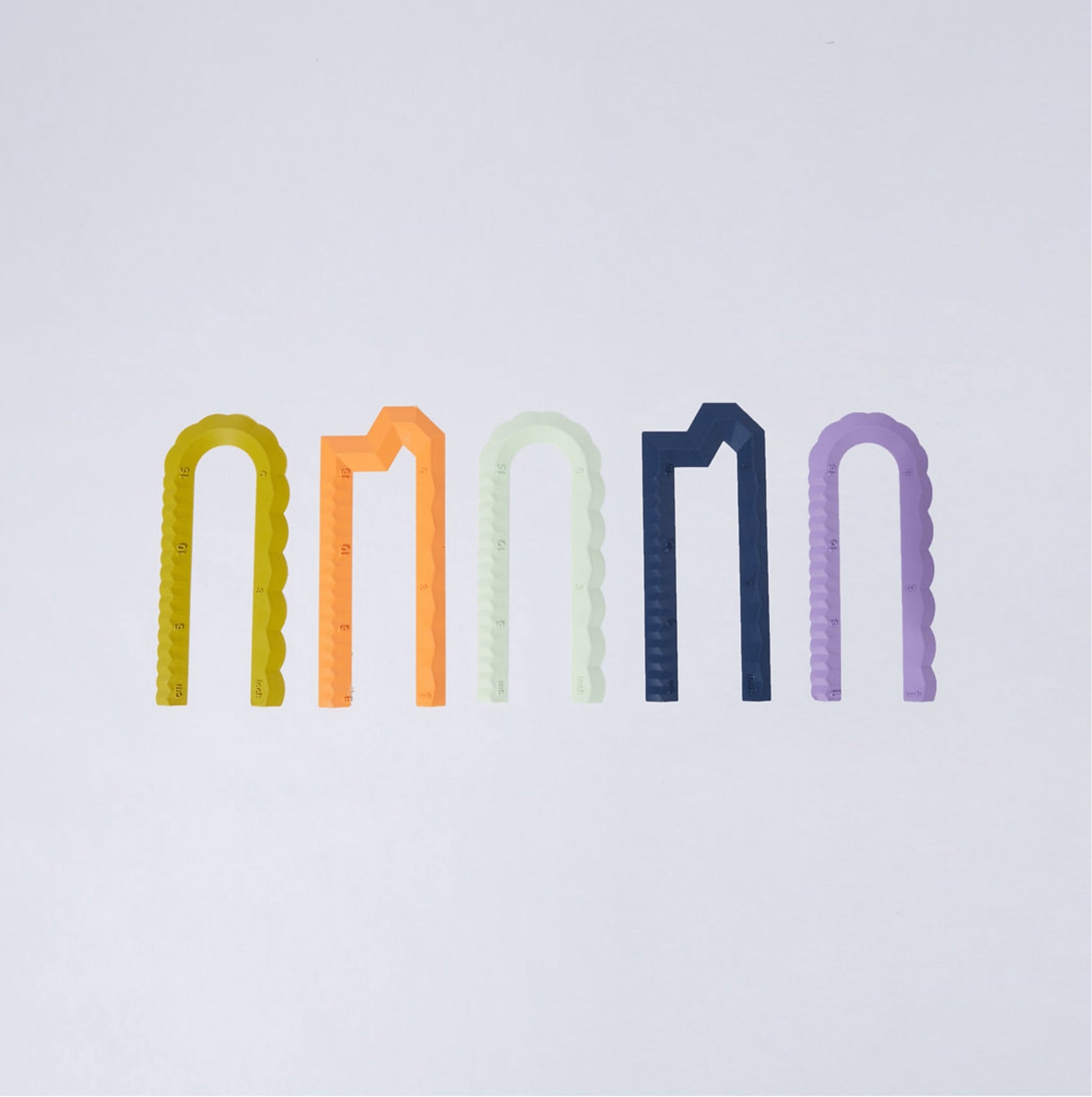 Corner is a playful collection rethinks rulers by indicating measurements via forms and patterns instead of numbers. Each ruler measures both inch and cm depending on the orientation. It allows the user to draw unusual geometric sequences while measuring through straight lines. The collection aims to bring a whimsical touch to the often serious office environment. About the design: Corner Collection is series of 3D printed objects exploring new design process. Items sketch through VR software manufactured through additive technology. The project is part of ongoing research that reexamines and structures design methodology. Size: 7.6 x 3.1 x 0.1 inch / 19.5 x 8 x 0.5 cm Material: 3D printed PLA