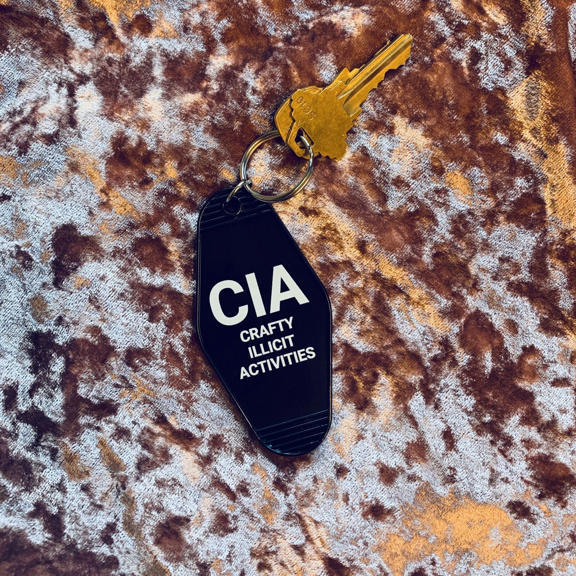 Crafty Illicit Activities Motel Style Keychain in Black