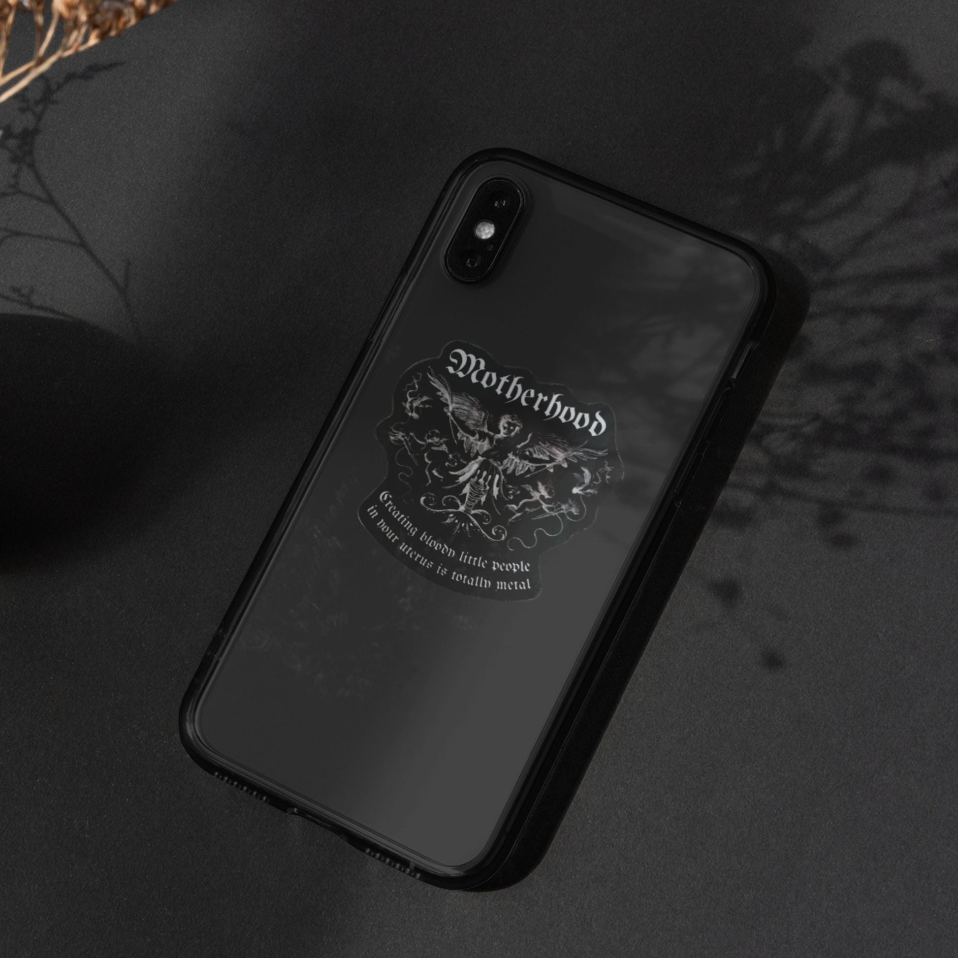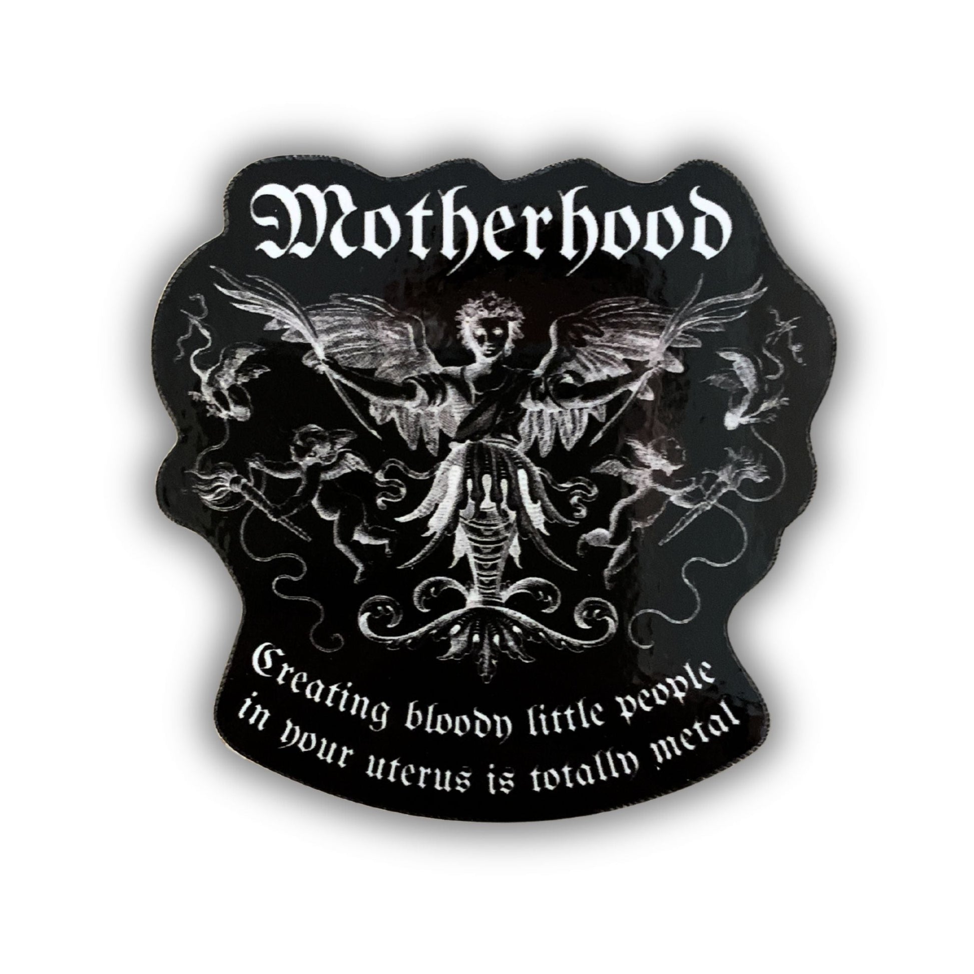 Reads: "Motherhood. Creating Bloody Little People In Your Uterus is Totally Metal".