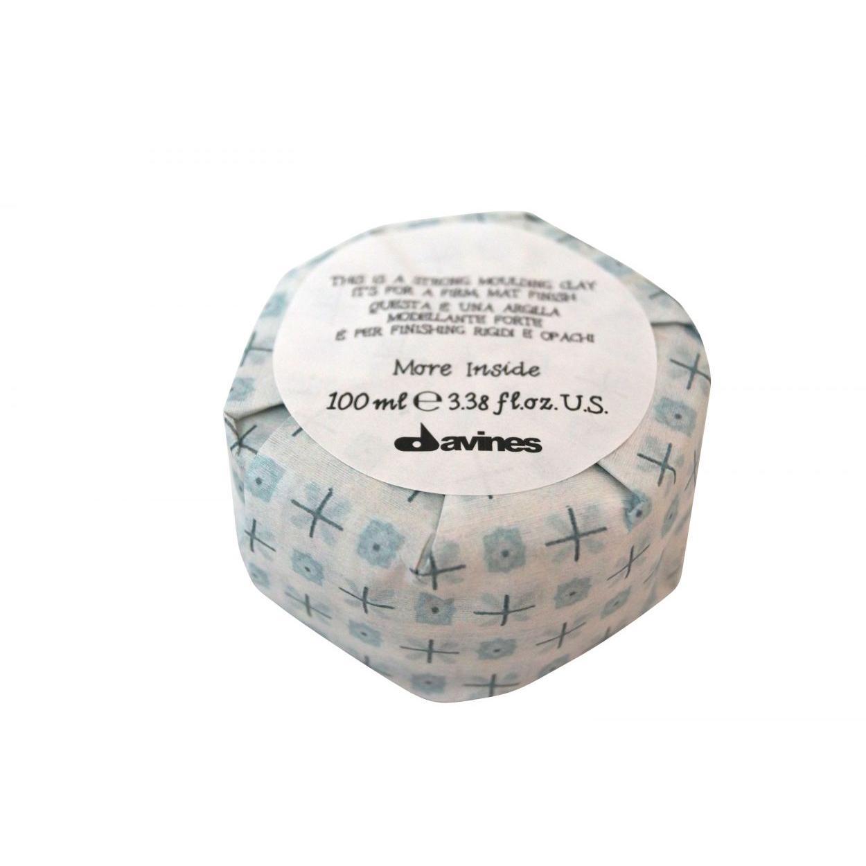 Davines More Inside This Is A Strong Moulding Clay allows for hairstyling, from the casual to the extreme, with long-lasting hold and no sticky or wet-looking finish. For matte styles with a strong hold. Gives texture and definition to hair and is resistant to humidity and frizz.