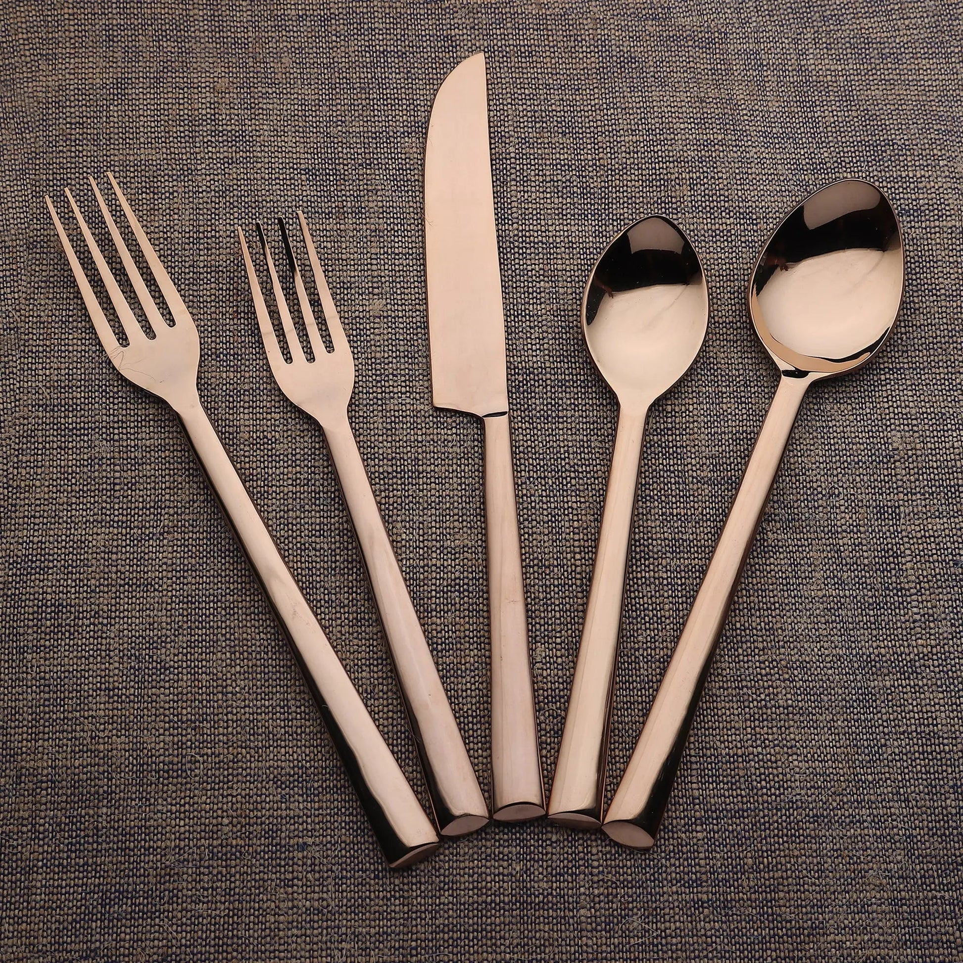 Elevate your meal and tabletop with the Diana PVD 5-piece flatware set. This collection features a sleek, contemporary look, ideal for those who value both style and quality. Whether hosting a dinner party or enjoying a quiet meal at home, Diana PVD flatware brings a warm luxurious glow to your table.