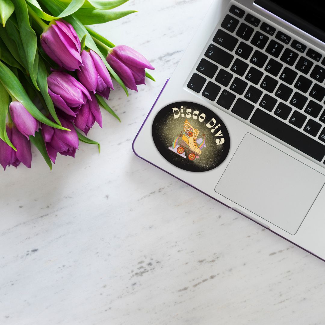 Looking for a fun and unique gift for the disco diva in your life? This Retro Vinyl Die Cut Sticker is perfect for adding a touch of '80s nostalgia to laptops, water bottles, and more. Get ready to bring some groovy vibes wherever you go! With its vibrant colors and glossy finish, this Disco Diva sticker is sure to stand out on any surface. Whether you're a fan of roller skates, dance floors, or just love a retro aesthetic, this sticker is a must-have for adding some fun to your everyday items. Makes a thoughtful gift for anyone who loves all things '80s!