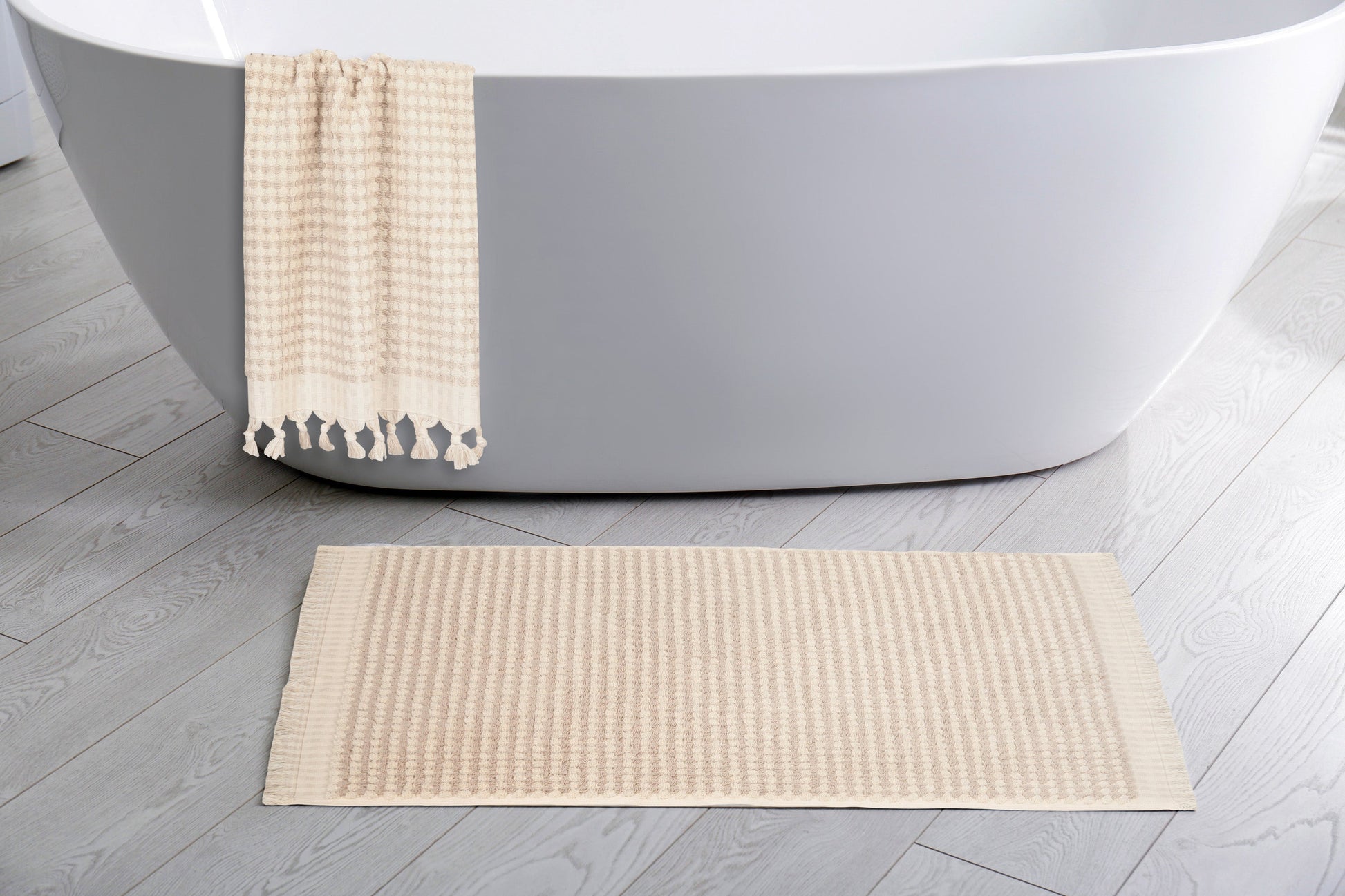 Our Dots Bath Mat is expertly crafted with intricate details from the finest long-staple Turkish cotton. Soft under foot and super absorbent, this mat adds a worldly charm to any bathroom.