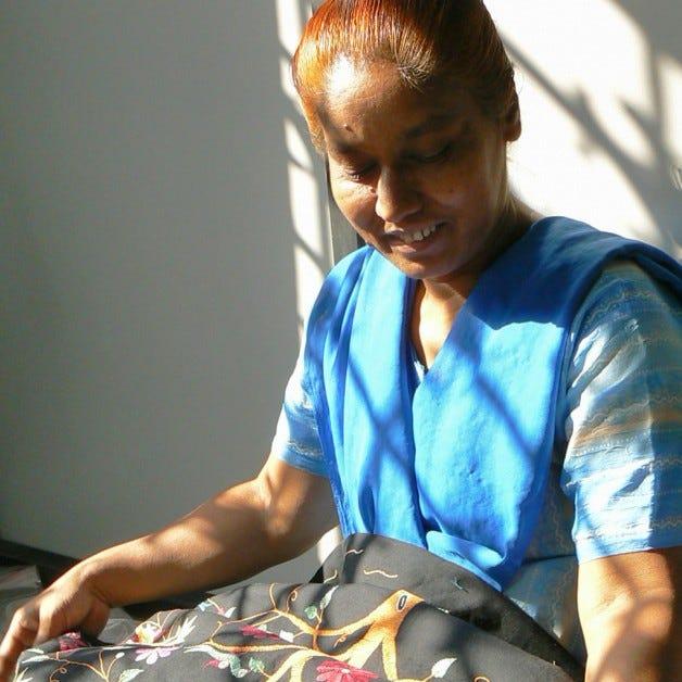 Decorating a nursery, a baby shower gift, or in a bedroom, the Dream Tree Wall Hanging is 100% cotton, beautifully hand-embroidered with the words: "Where dreams grow wild and beautiful and free" by artisans of St. Mary's Mahila Shikshan Kendra in India. This hand-embroidered wall hanging casts a dreamlike quality with birds perched, monkeys too, and a pair of elephants nearby with a majestic tree as their grand meeting spot. Imagine yourself in this world as you picture the artisans who handcrafted this beautiful work of art. Many people have hung the Dream Tree Wall Hanging in their office as a conversation starter and inspiring artwork. A Ten Thousand Villages exclusive design.