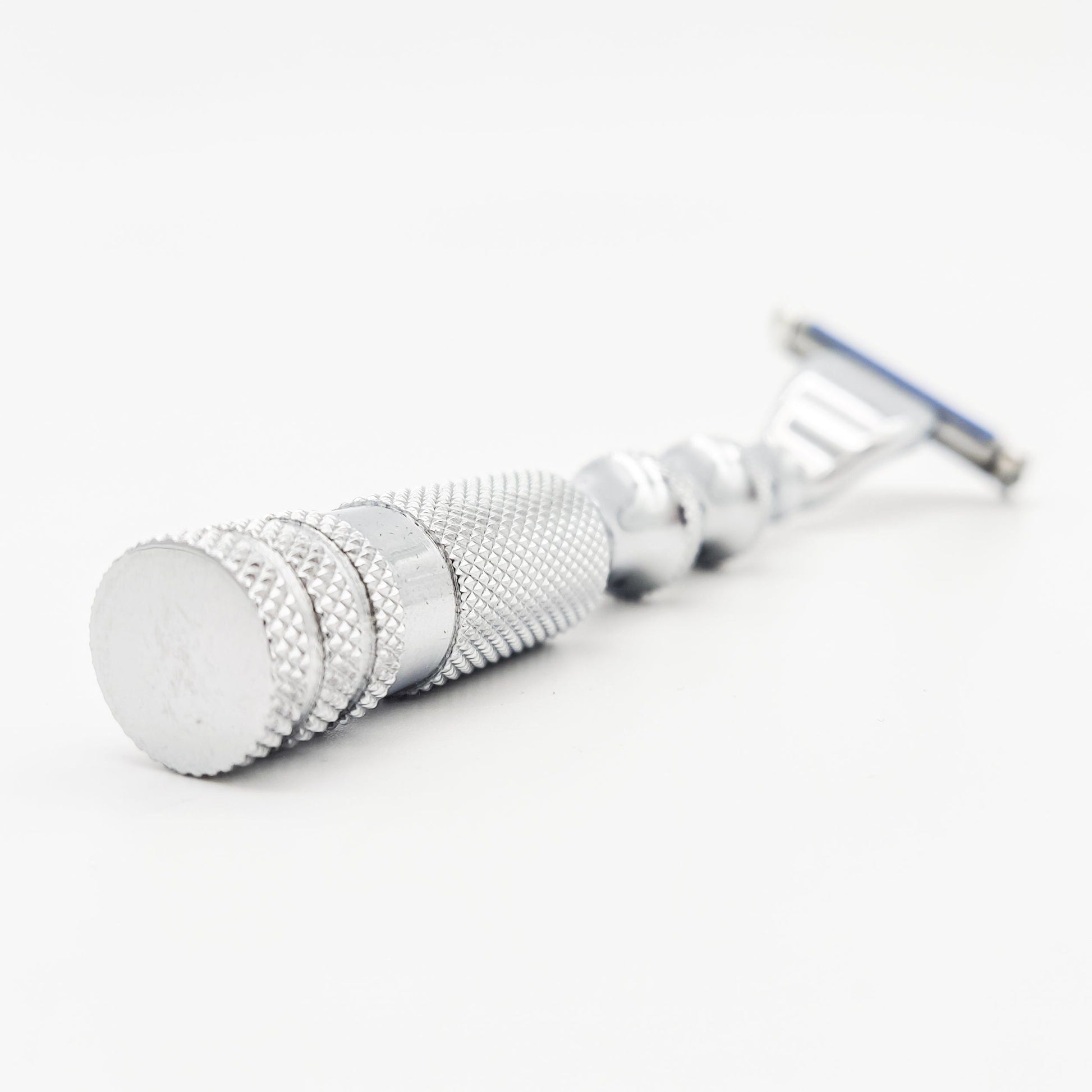 Properly weighted and balanced handle helps reduce pressure placed on the skin during shaving.
