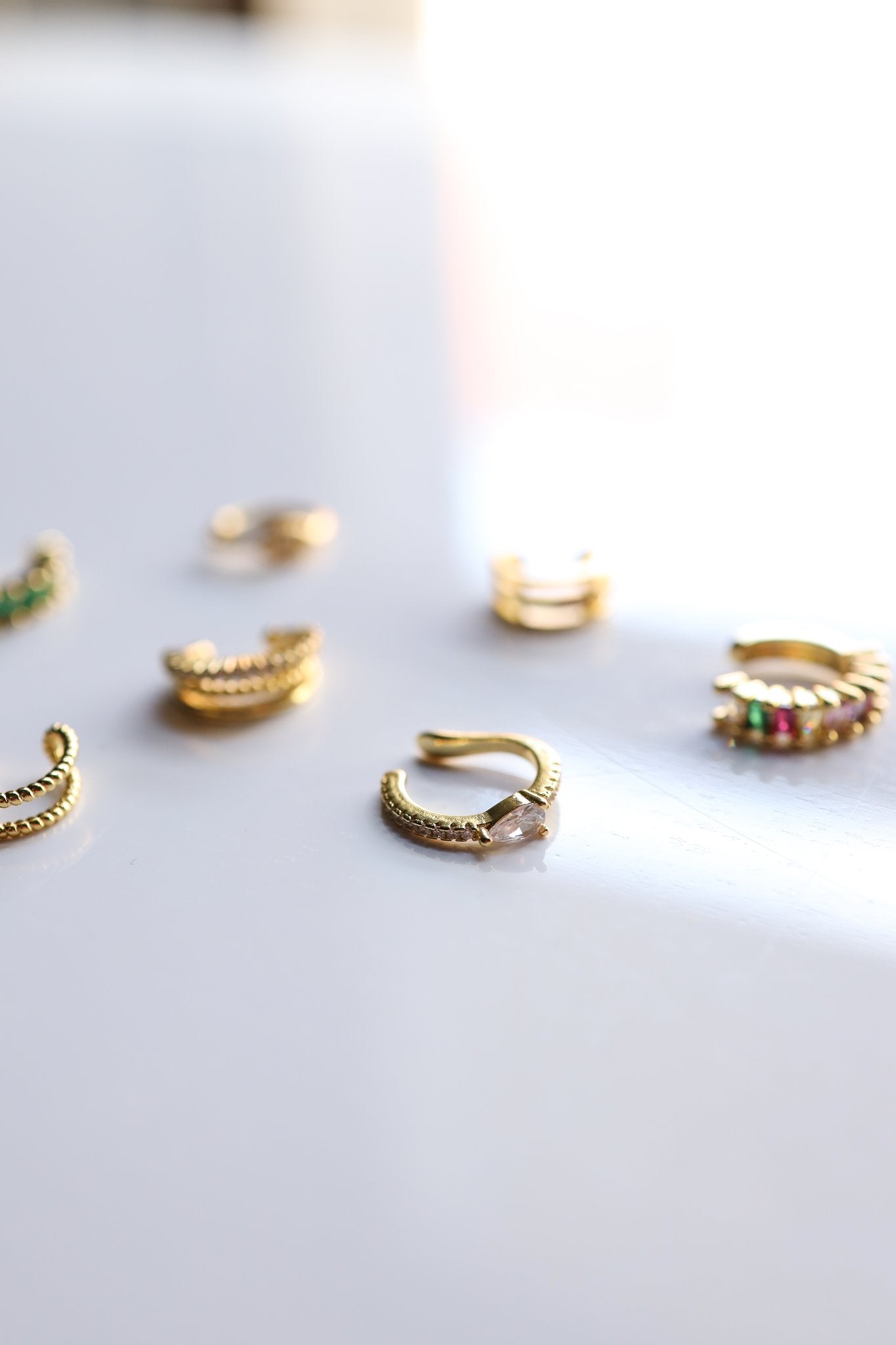 This ear cuff features a timeless design with a marquis crystal set in beautiful gold. Its delicate yet exquisite style will make you shimmer and shine in all the right ways. With a sophisticated look that never goes out of style, it's elegance for any occasion.