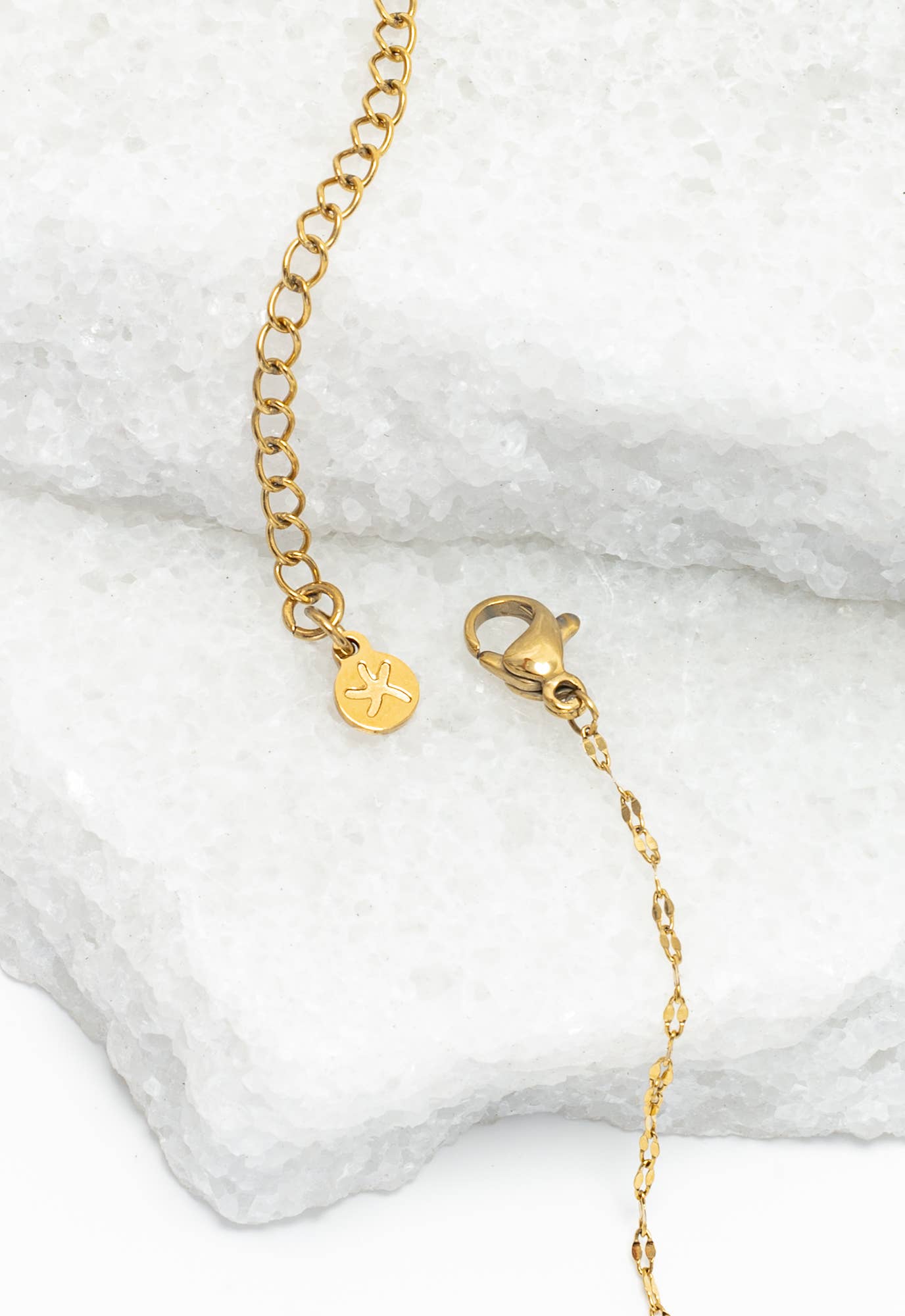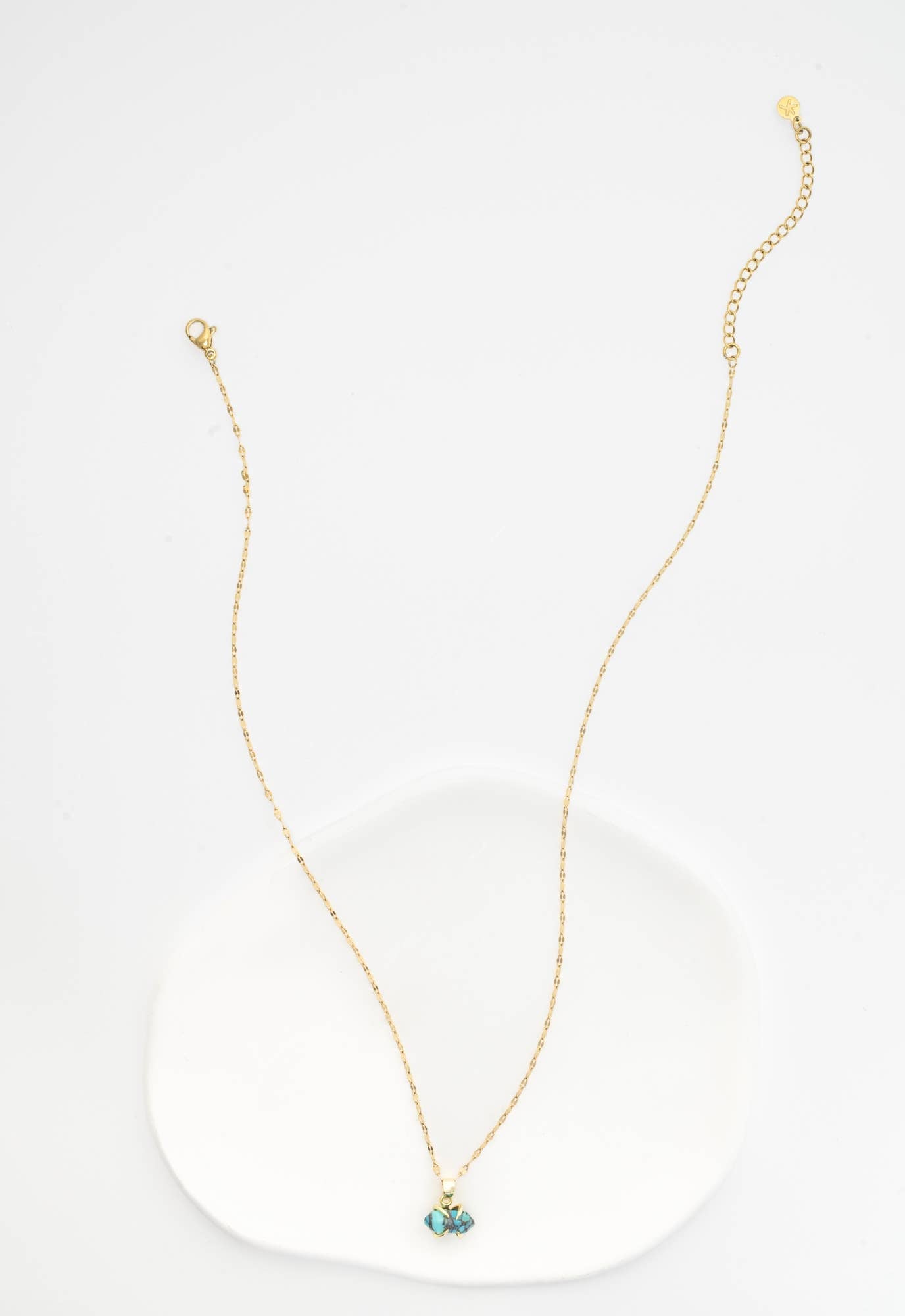 Showcase your favorite stone and your favorite cause in our Elevated Turquoise Necklace! A classic 14k plated gold four-prong mount sets the stage for the mesmerizing turquoise stone hung from an adjustable 14K gold plated necklace. Slip on the Elevated Necklace for a special occasion or celebrate every day in this eye-catching style. Enjoy knowing that your necklace creates safe and dignified work for women experiencing freedom at Starfish Project. Box size and color may vary. Materials: 14k gold plated stainless steel chain with turquoise pendant Hypoallergenic; lead and cadmium free with nickel content less than 100 ppm. Size: 16-18 inches