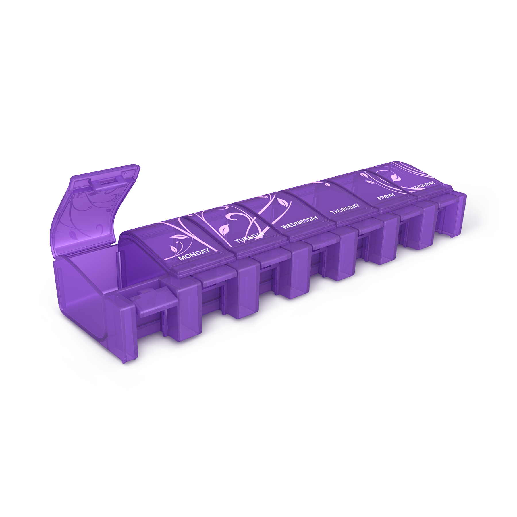 The Ezy Dose Vitamin Planner provides extra large compartments to fit all pill sizes. This weekly Ezy Dose Vitamin Planner features unique soft-touch buttons. Each easy-to-open compartment is marked with the weekday and has a rounded base for easy vitamin retrieval. Vibrant contemporary designs and colors.