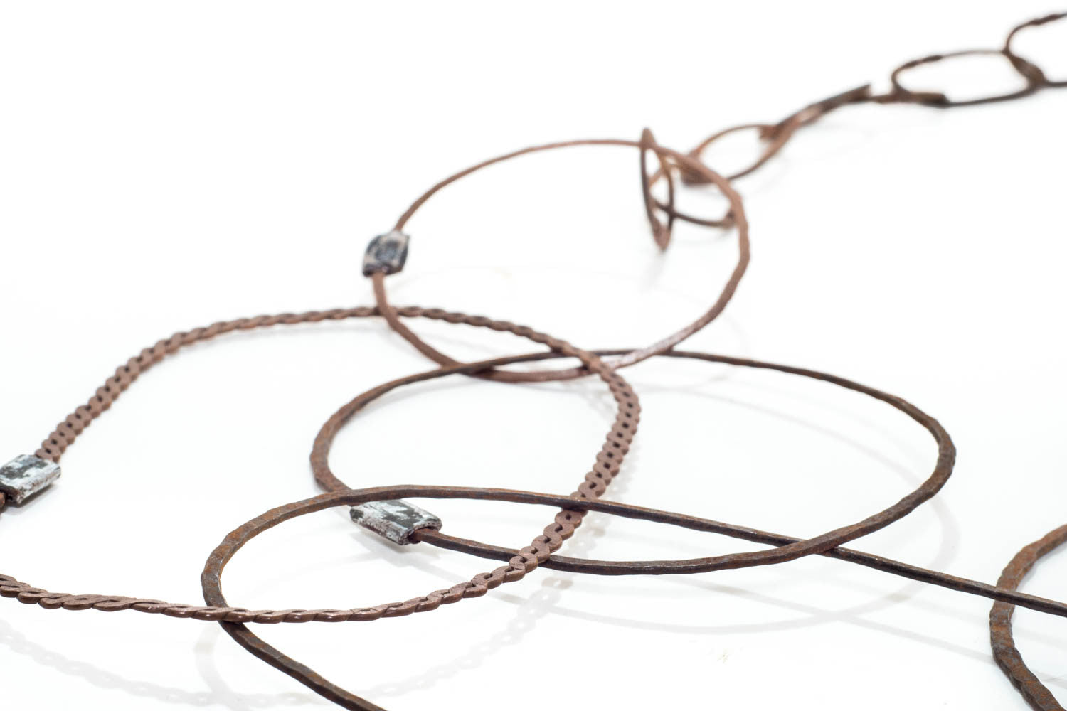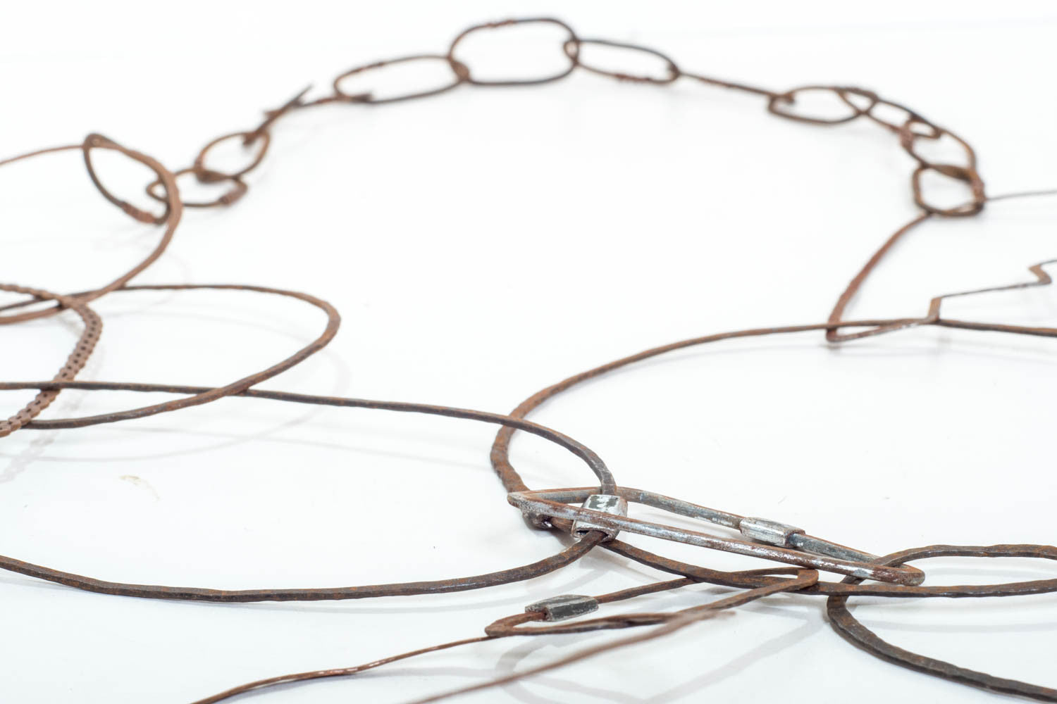 This incredible statement piece is made of reclaimed metals and is amazing as a necklace or a belt. Dresses up a simple outfit and has an artistic flair that draws oohs and aahs.