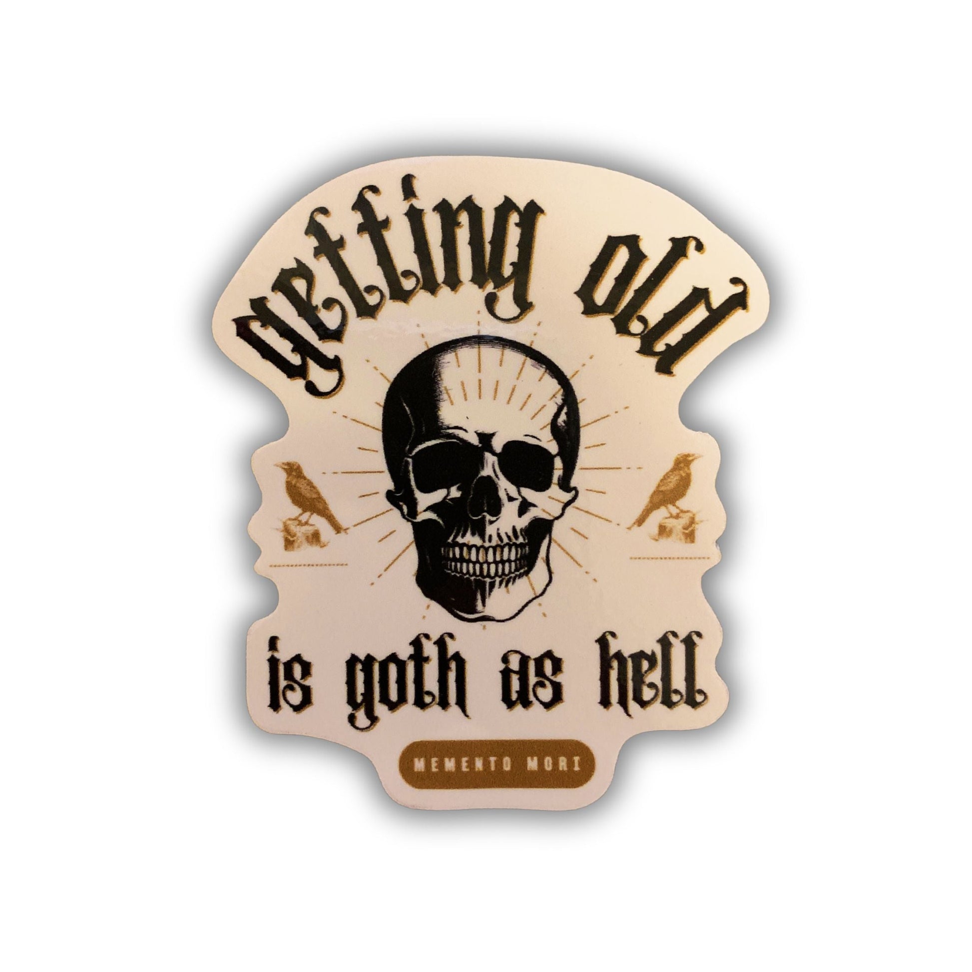 Getting Old is Goth as Hell Vintage Skull Tattoo Heavy Metal Themed Sticker | Vinyl Die Cut Decal