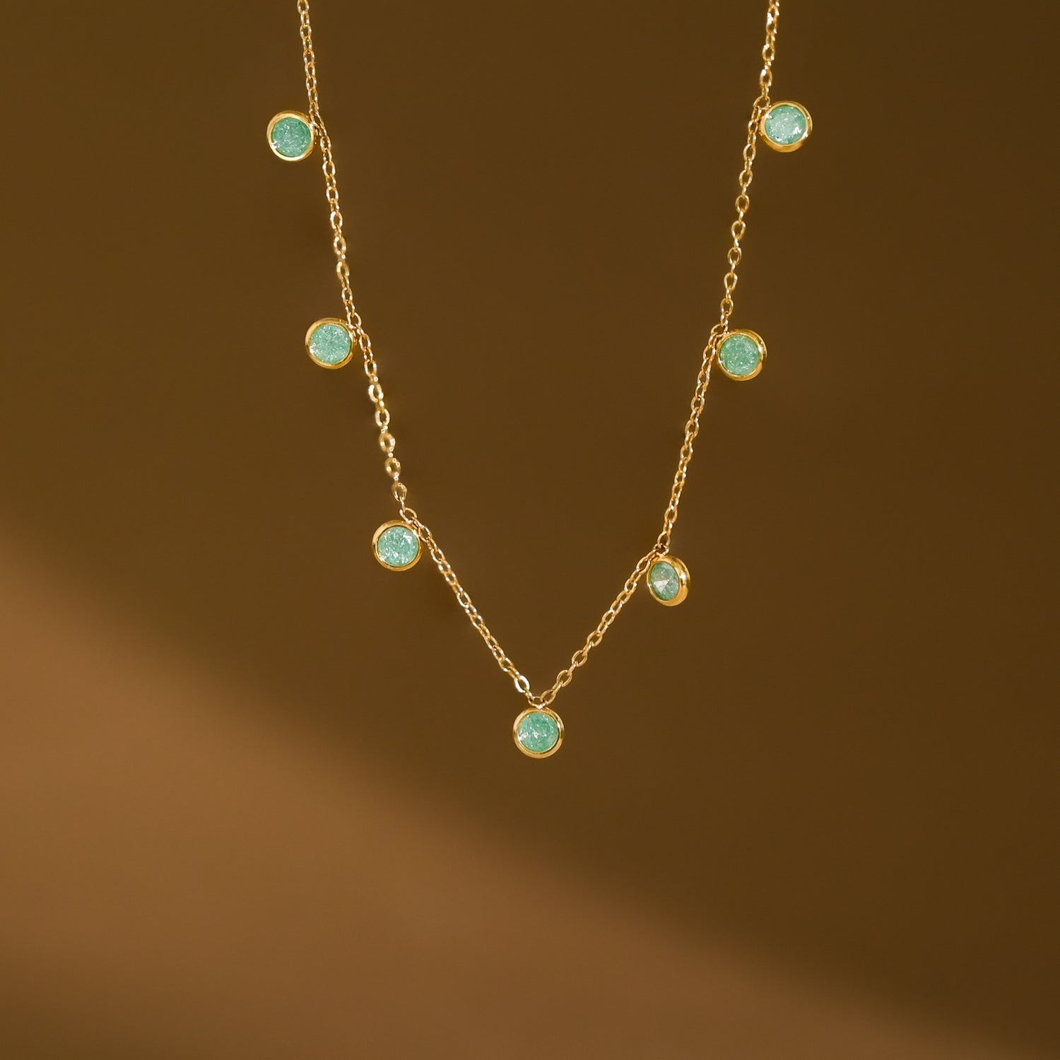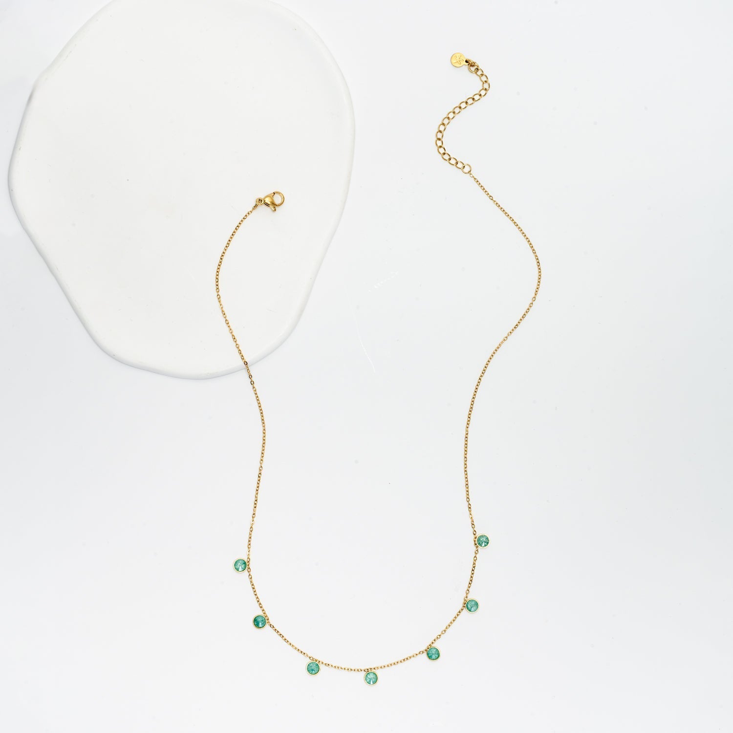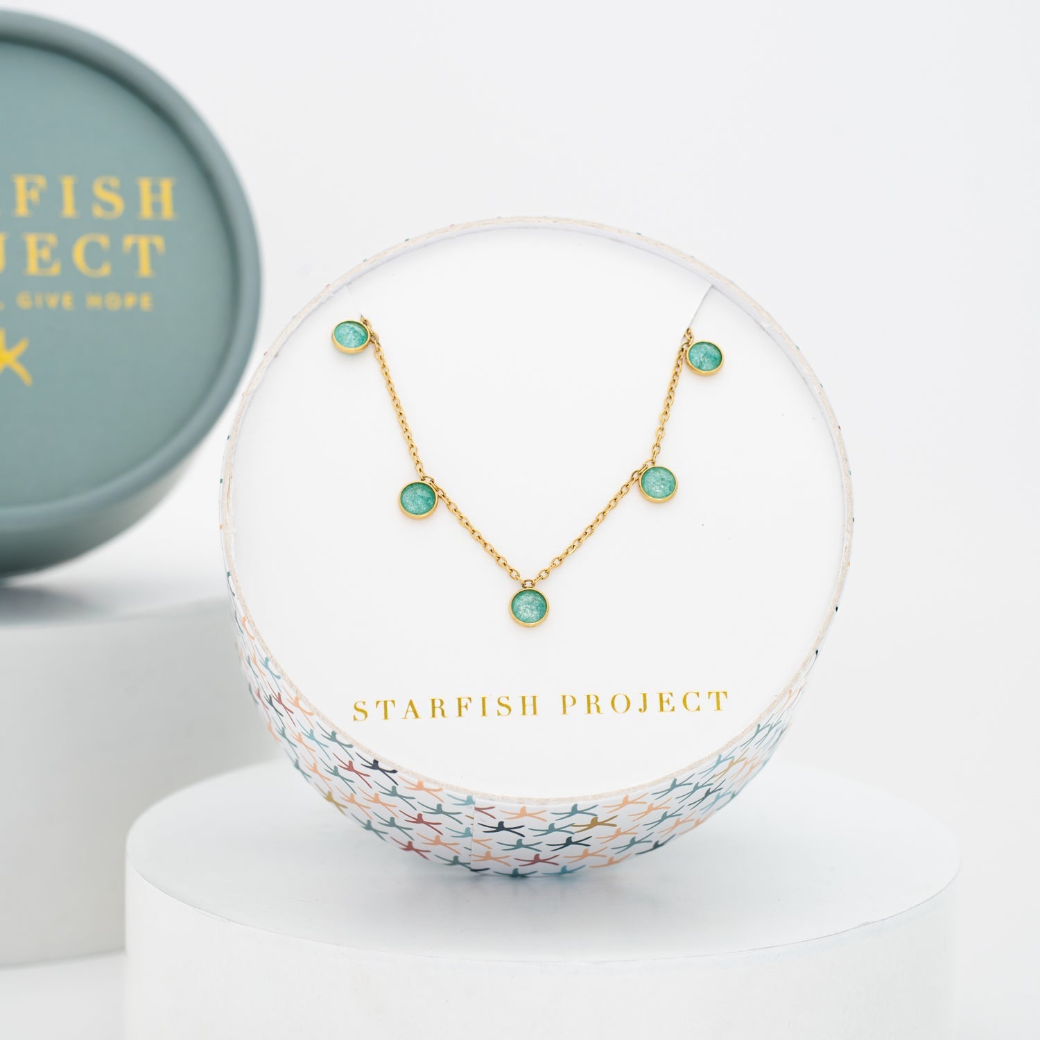 Our Guiding Lights Necklace features six shimmering zircons set along an adjustable 14K gold-plated chain — a timeless design to wear every day. Each stone sparkles like a light leading the way, a reminder that even the smallest glimmers can illuminate the path forward. With each purchase, you join a story of freedom, hope, and brighter futures for survivors at Starfish Project. Layer it with your favorite pieces or wear it solo as a delicate symbol of guidance and hope. Materials: 14k gold plated stainless steel and zircon necklace Hypoallergenic; lead and cadmium free with nickel content less than 100 ppm. Size: 16-18 inches
