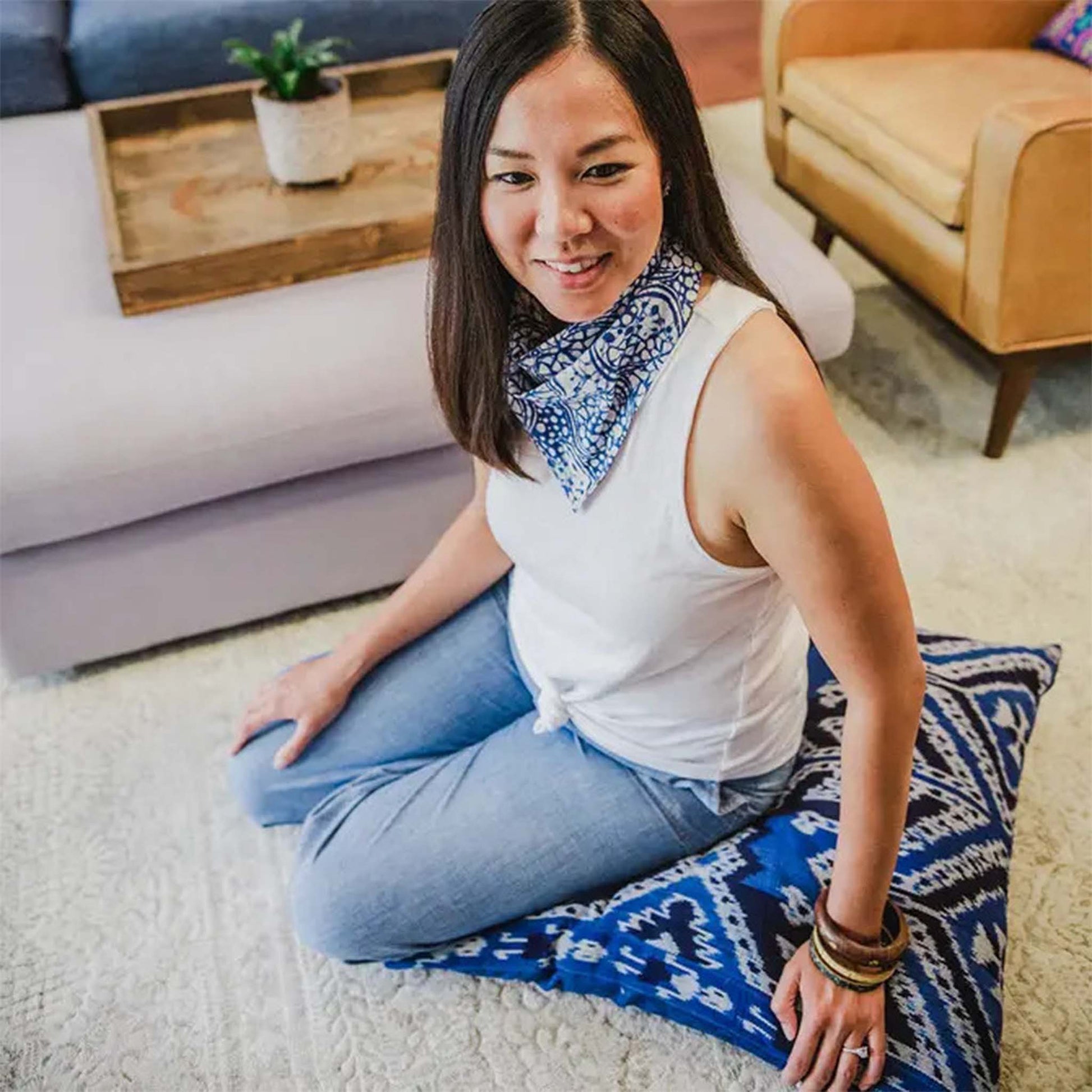 - Back of the pillow is a blue cotton fabric to complement the front ikat pattern