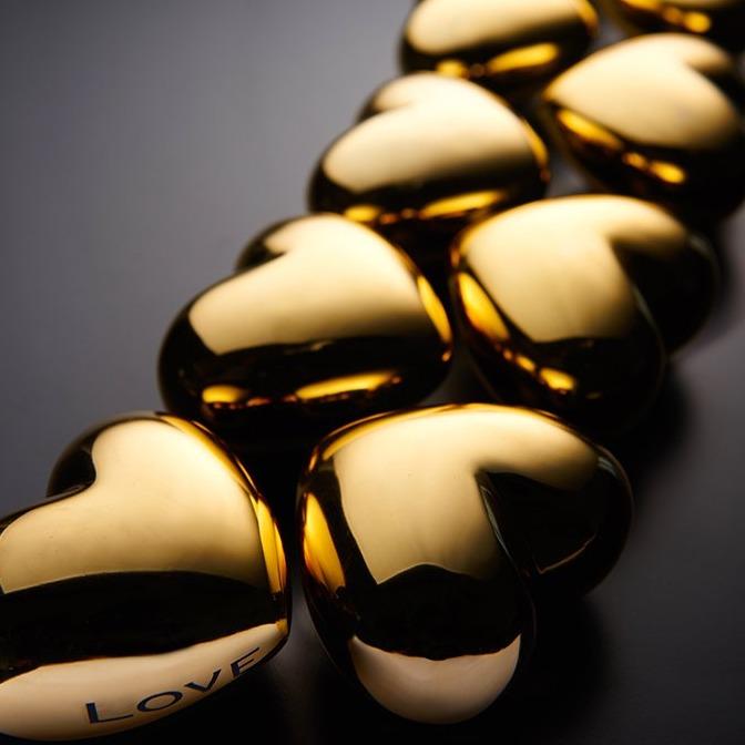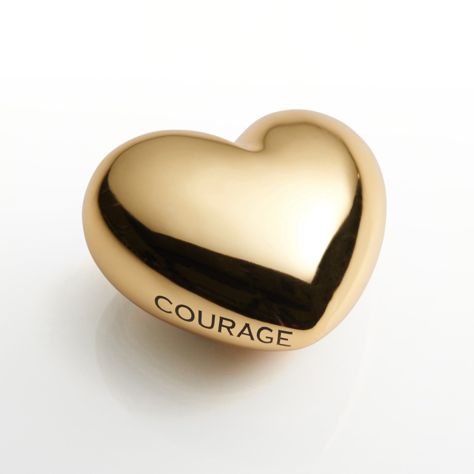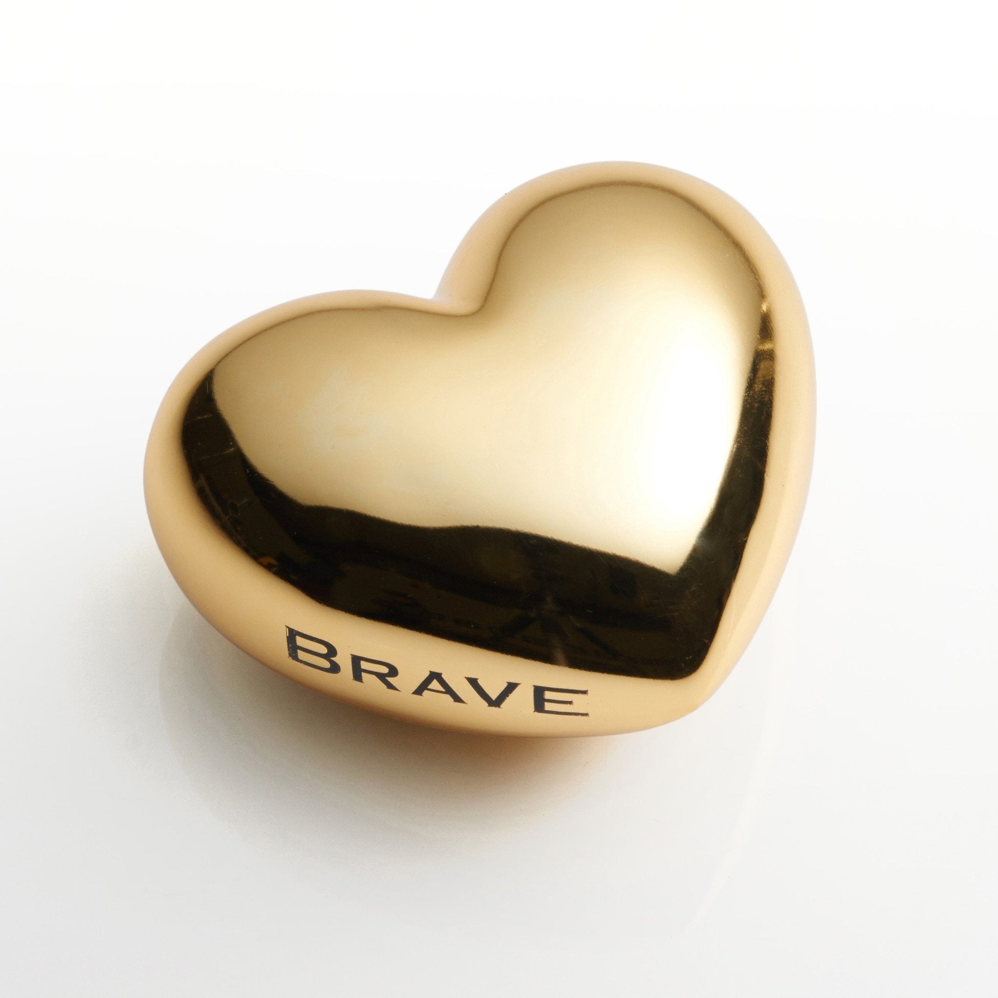 The OBJECTS COLLECTION is a group of unique pieces. Whether childlike and humorous, or deep and symbolic, each conveys a message. They make perfect gifts. The moment you see one you know who its for. Voluptuous Gold Heart inscribed with the sentiment HOPE , BRAVE, LOVE, COURAGE, TRUTH. Each of our creations is designed in our San Francisco studio. Master craftsmen using centuries old technique of sand casting create the original mould and skilled artisans hand create every piece, with pride, in our family owned factory. Details Dimensions : 4" L; 2.2" H; 3.75" W; Finish: Gold Material : Aluminum Use and Care Given its handmade and hand-finished nature, variations in the piece are to be expected and celebrated. No two pieces are exactly alike. Hand wash with mild soap, water, and towel dry. Do not use abrasives or chemicals to clean the metal as it may scratch and discolor. Not dishwasher safe. Will not tarnish