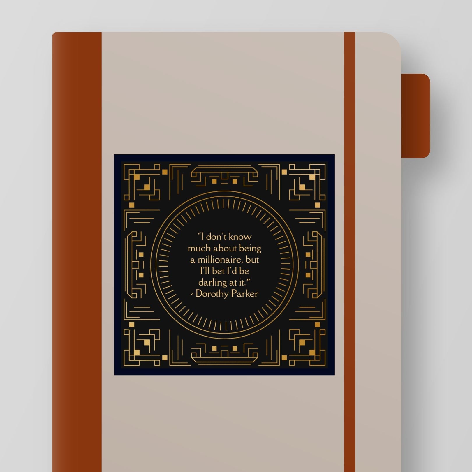 Add a touch of humor to your laptop, water bottle, or bike with the "I Don't Know Much About Being a Millionaire" vinyl decal featuring Dorothy Parker's witty words. This 3.35" x 3.35" decal has a glossy finish that protects against UV rays, ensuring vibrant colors that last. Makes a fun and unique gift for the literary enthusiast in your life.
