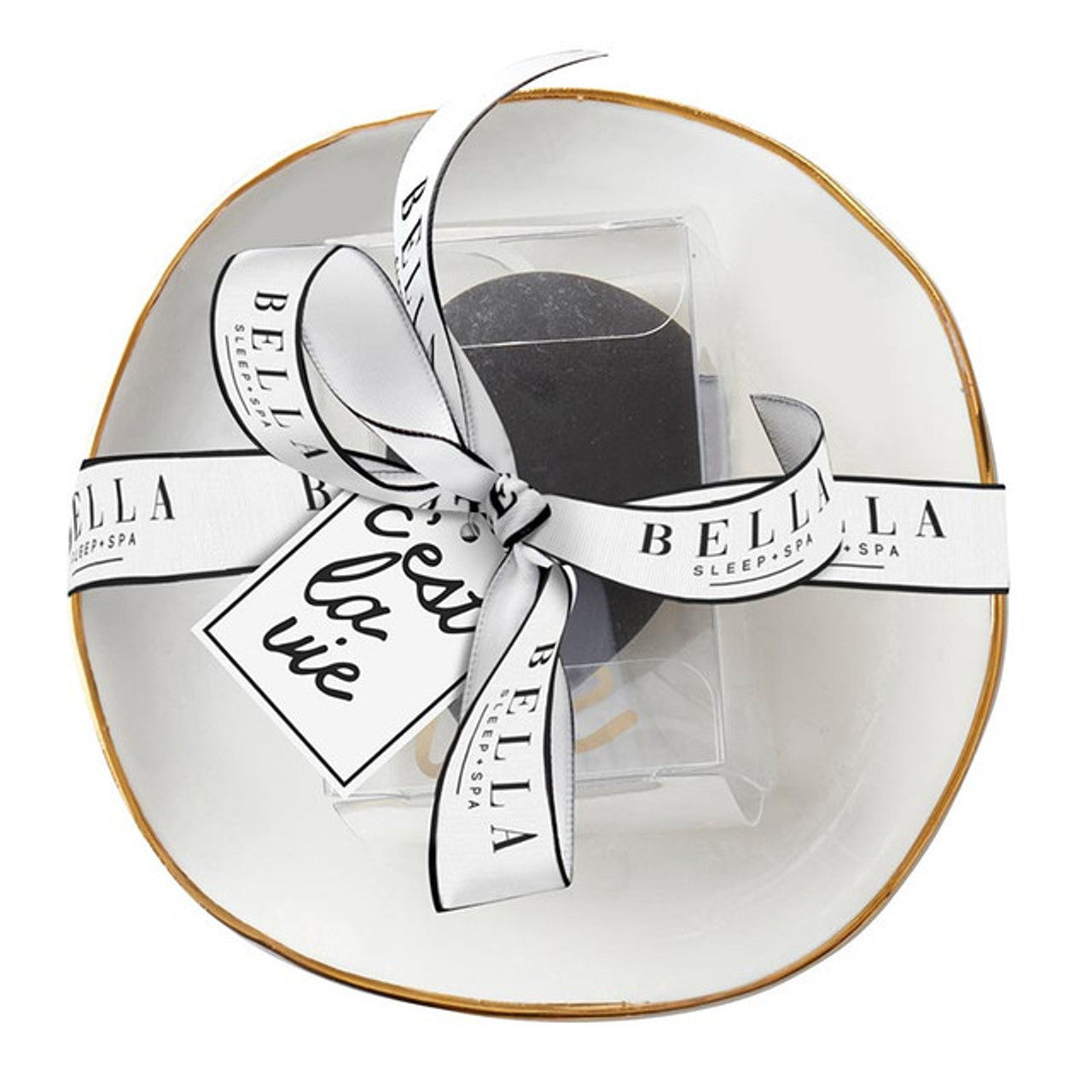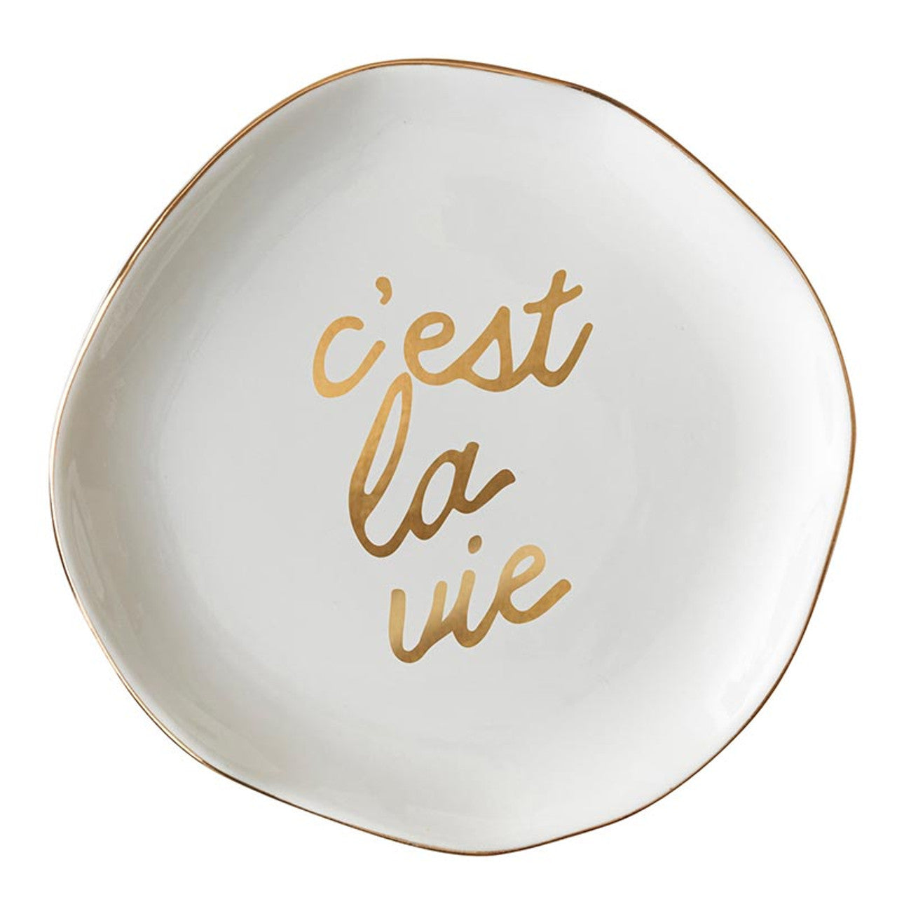 • Ceramic tray reads: "C' Est La Vie" in gold print on ivory ceramic with a gold rim
