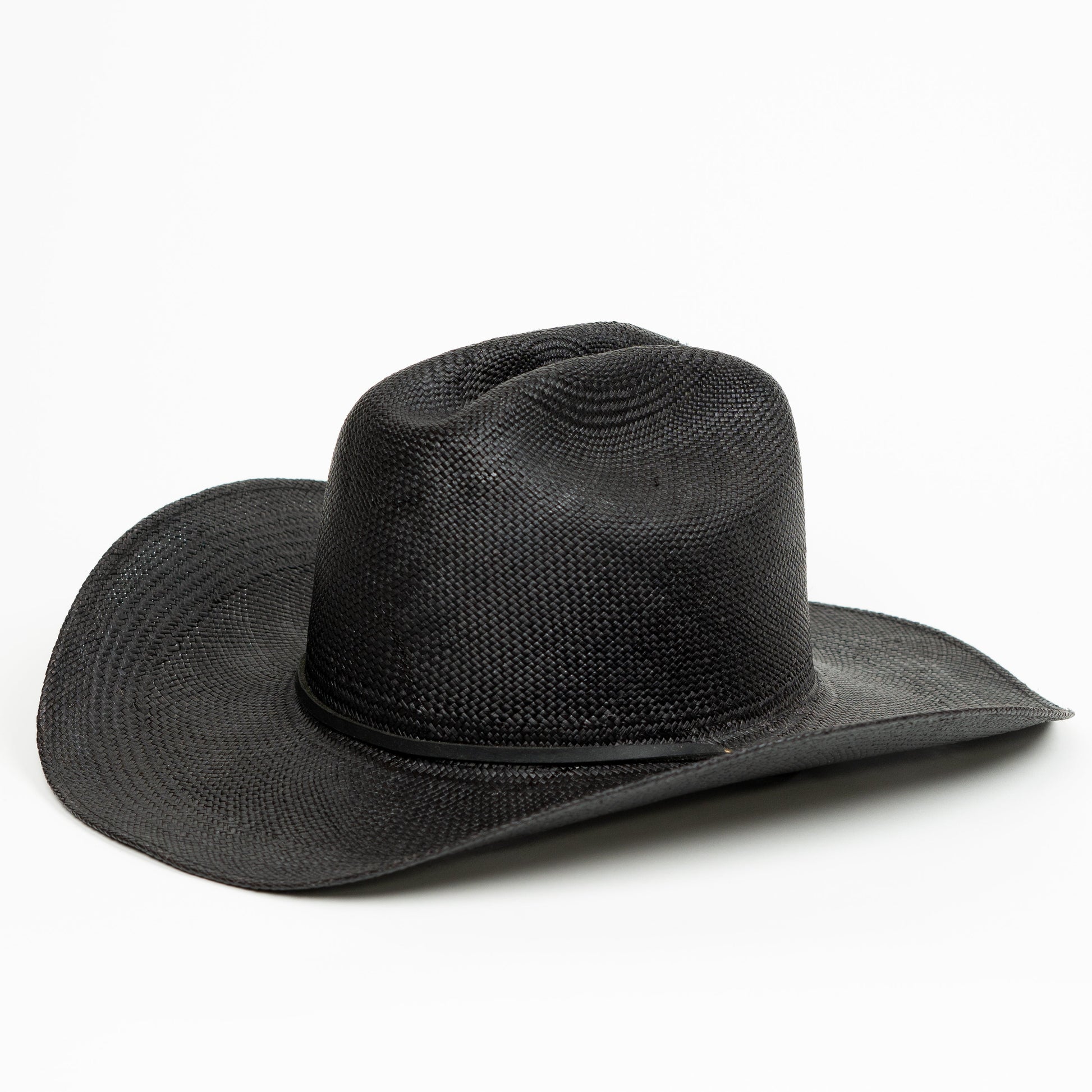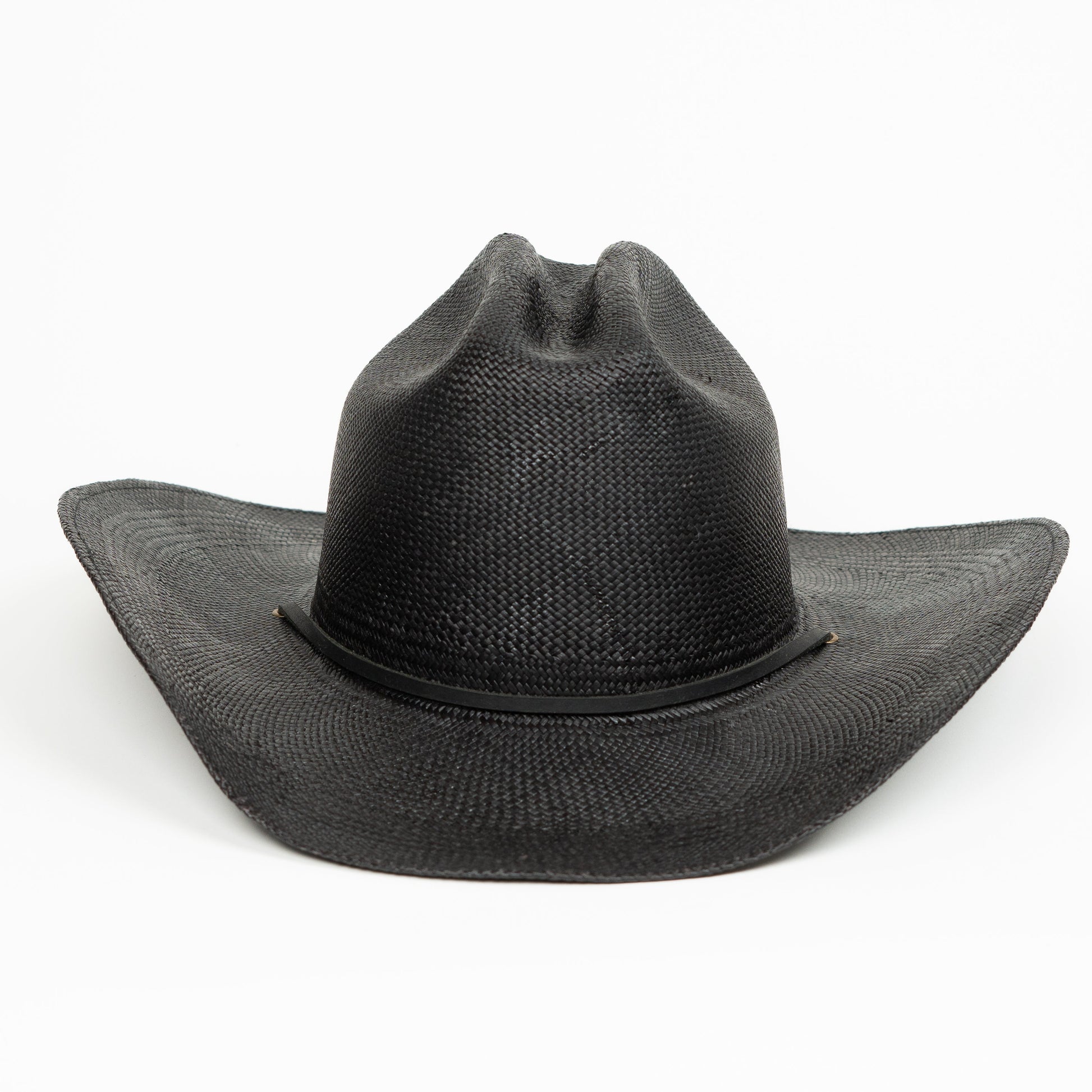 Go bold with our Black Karina Straw Cowboy Hat. Inspired by old western films and dusty roads, this hat is funcional and fun with a black vegetable-tanned leather neck tie and strap. Like all of our hats, the Karina is hand-pressed by our artisan partners in Ecuador and made from paja toquilla straw. We partner with a fourth generation family of hat-makers to highlight the traditional hat making process while adapting new, modern designs. Our hats are handmade and one-of-a-kind. This means that no two are exactly alike and almost all contain irregularities from size to color. Please allow for slight imperfections as this is what adds to the unique character of each hat and band. Style Notes 100% Handwoven Paja Toquilla 4" Curved Brim with Creased Crown Veg-tanned Leather Strap + Neck Tie Custom elastic lining Sizing Guide If you are in between sizes or unsure of your hat size, we recommend sizing up. Most of our hats run small given an elastic band on the inside that makes for a snug fit. S — ( 54cm | 20.5" ) M — ( 56cm | 21.25" ) L — ( 58cm | 22.8" ) XL — ( 60cm | 23.75" )