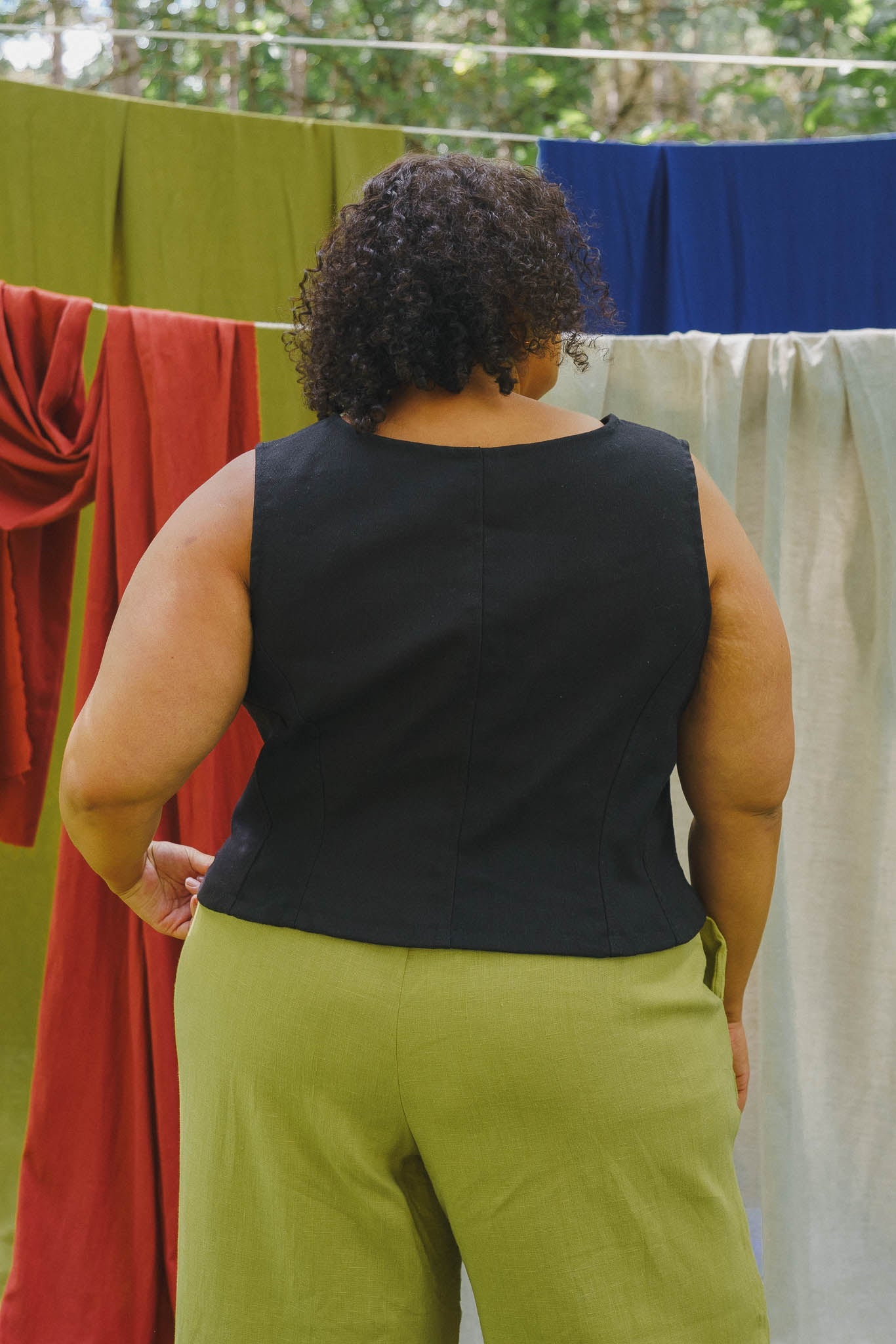 Designed with a flattering flared silhouette and finished with classic brass snaps. As part of our Fit Conscious collection, The Katherine Vest is available in 12 inclusive sizes to ensure the perfect fit for every body.
