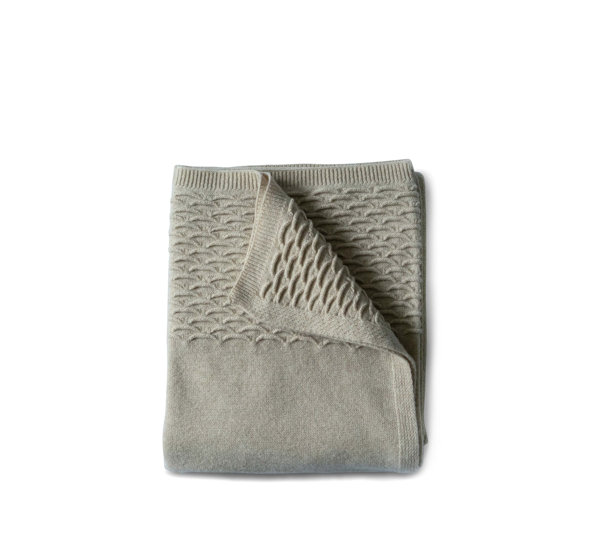 100% Soft Lambswool Super soft 'hand' of lambswool. Unique scallop texture. Has the energy of a treasured knit sweater. Dimensions: 52”x67” Dry Clean Only Woven in Portugal