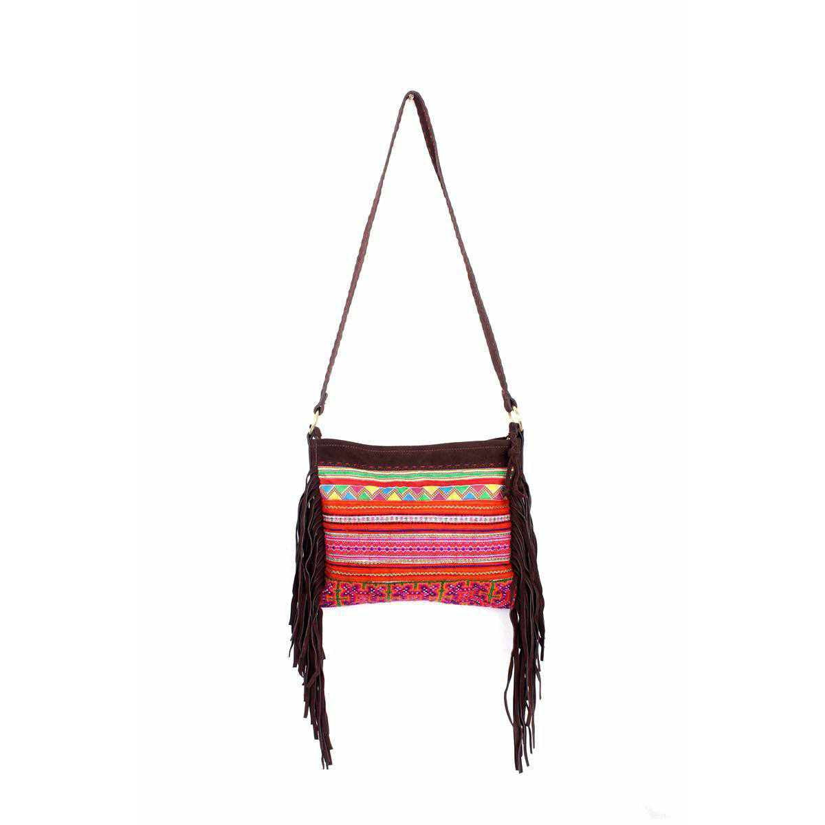 Leather Fringe Embroidered Crossbody Bag - Thailand