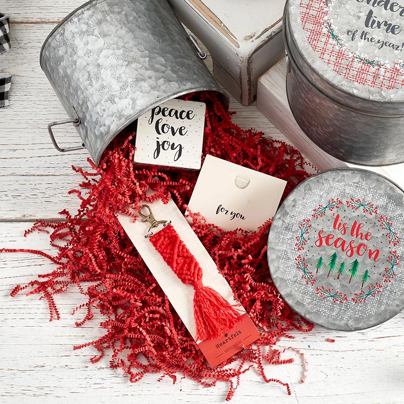 Add a touch of festive flair to your favorite bag with this holiday-themed red macramé keychain. The 6.75" tasseled charm is perfect for keeping keys close at hand and makes a stylish gift for moms, grandmas, and best friends this holiday season. Crafted from sturdy red knotted cording and accented with a vintage gold metal lobster clasp, this 6.75" keychain adds a pop of color and style to any purse or tote. Its versatility makes it a thoughtful and practical gift for anyone who loves unique accessories.