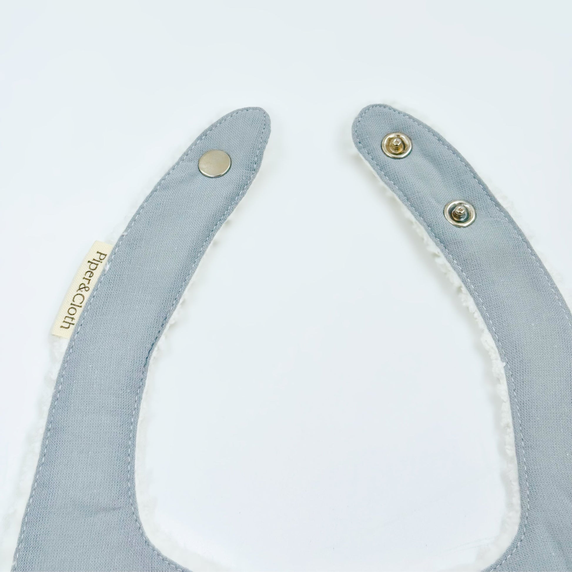 Made with soft, breathable organic cotton on the front and plush cotton terry backing for extra absorbency, this bib not only protects clothing from drool but also securely holds baby’s favorite pacifier or teether within easy reach. The adjustable snaps at the neck provide a comfortable fit that grows with your little one, while the bottom snap keeps the pacifier clean and close at hand.