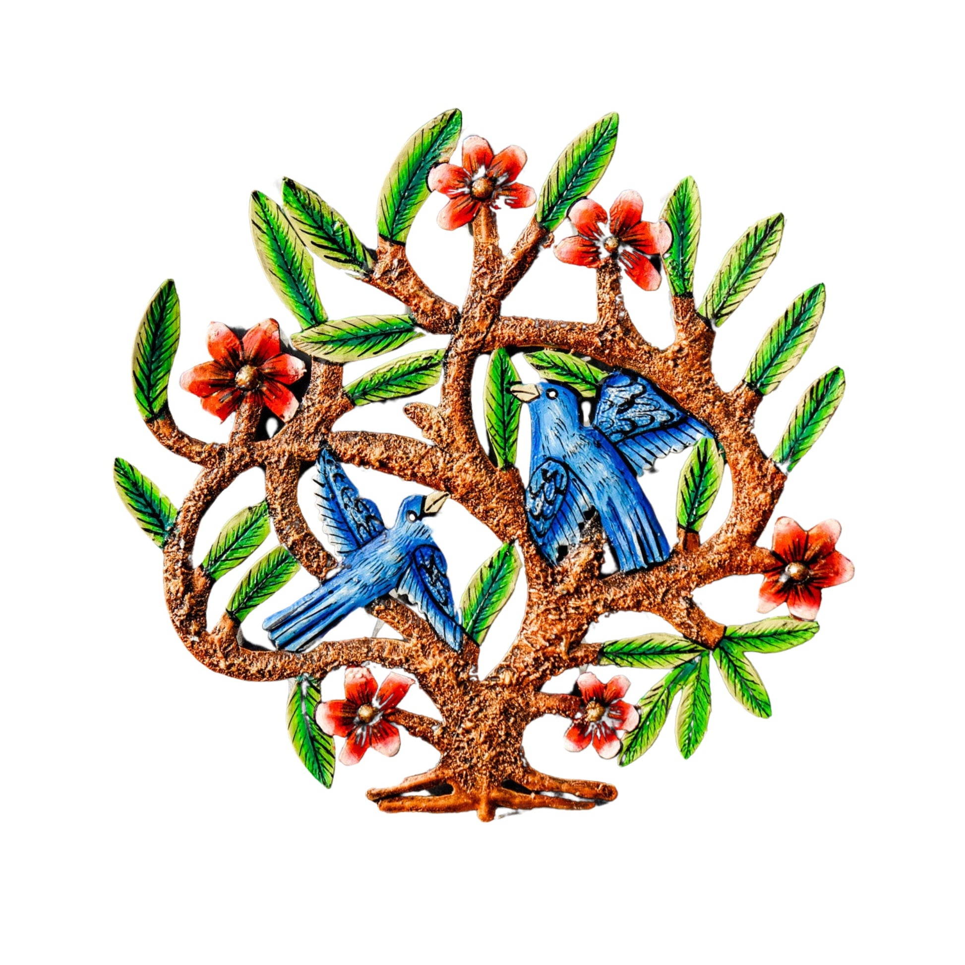 A folk art that dates back to the mid-20th century, Haiti metal art today is the art of recycling and transforming discarded steel oil drums into ornate metal artwork. As handmade Haitian metal art, there will be slight variations from one piece to another, adding to the unique character and value of each piece of metal art.
