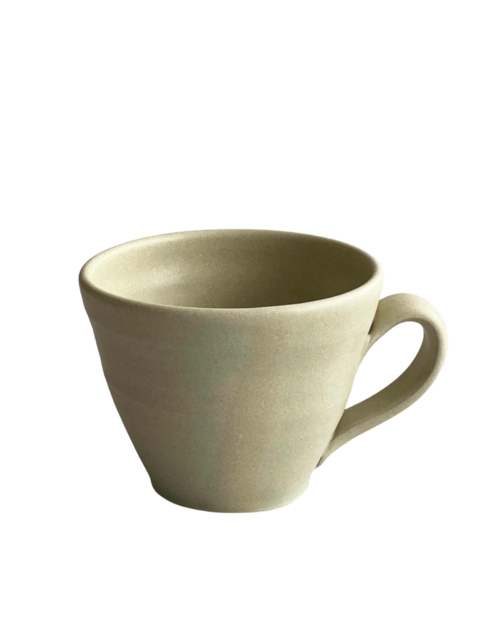 Featured in two colors, salt and moss, each piece features soft contours and a subtle palette. It is handcrafted on a clay imported from Spain. The clay body is a cool warm gray brown.