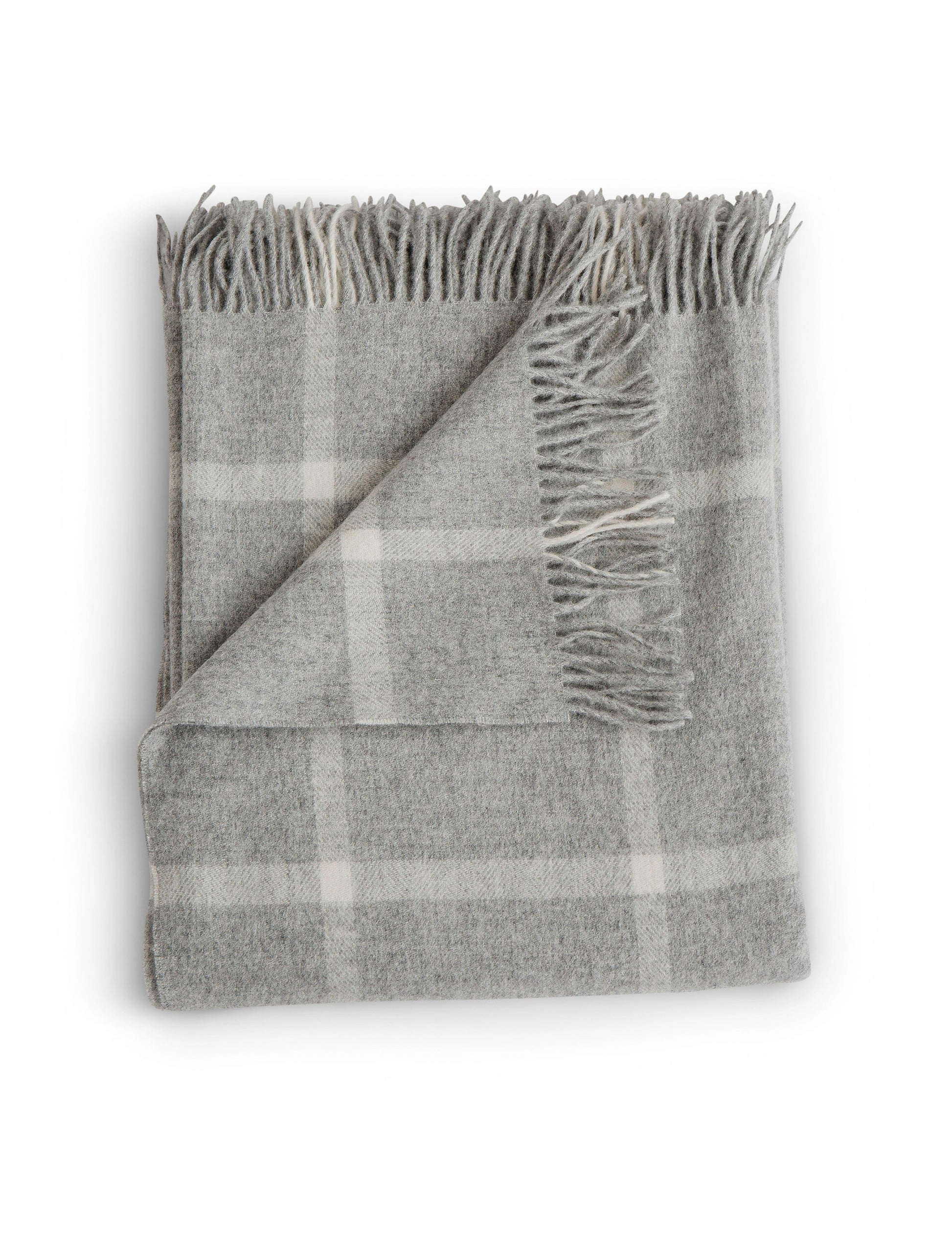 100% Merino Lambswool Plain or playful. Pops of color. Plaids, Windowpanes & Pinstripes. Your champagne and pajamas companion. Dimensions: 54"x72" Dry Clean Only Woven in the United Kingdom