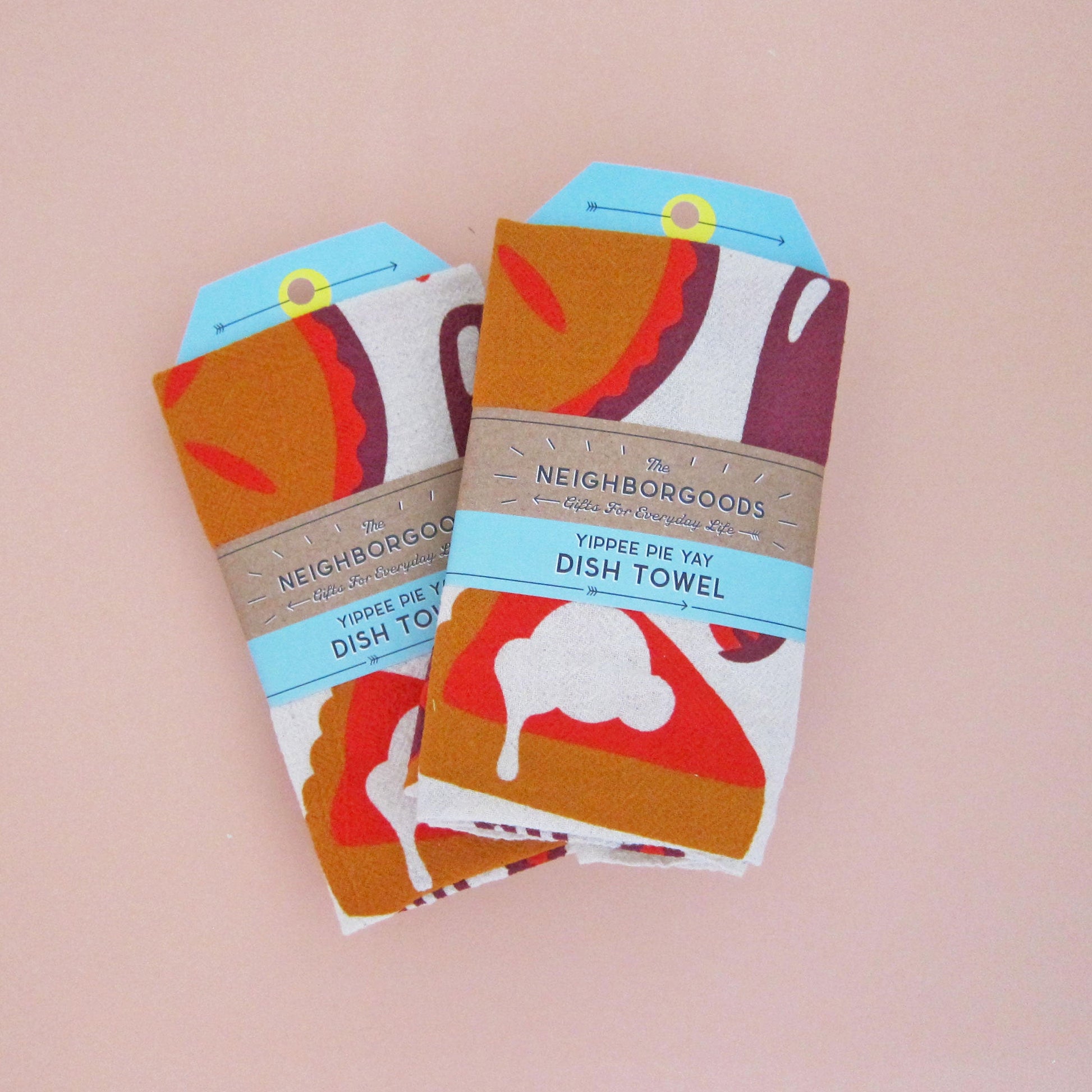 Yippie-Pie-Yay! We have enough pie towels to go around and give everyone a slice of fun for their kitchen. Our Pie dish towel is hand screen-printed, made from 100% flour sack cotton, and will only get softer and more absorbent over the years in your kitchen. A perfect gift for a pie lover, hostess, chef, or foodie, this vibrant dish towel is sure to spark joy and add color to your everyday life. 100% unbleached cotton Hand screen-printed with eco-friendly water based inks Machine washable Packaged in a ready-to-gift belly band Printed in the USA, hand packaged and designed in DC 24”W, 26”L Color may vary from monitor to monitor