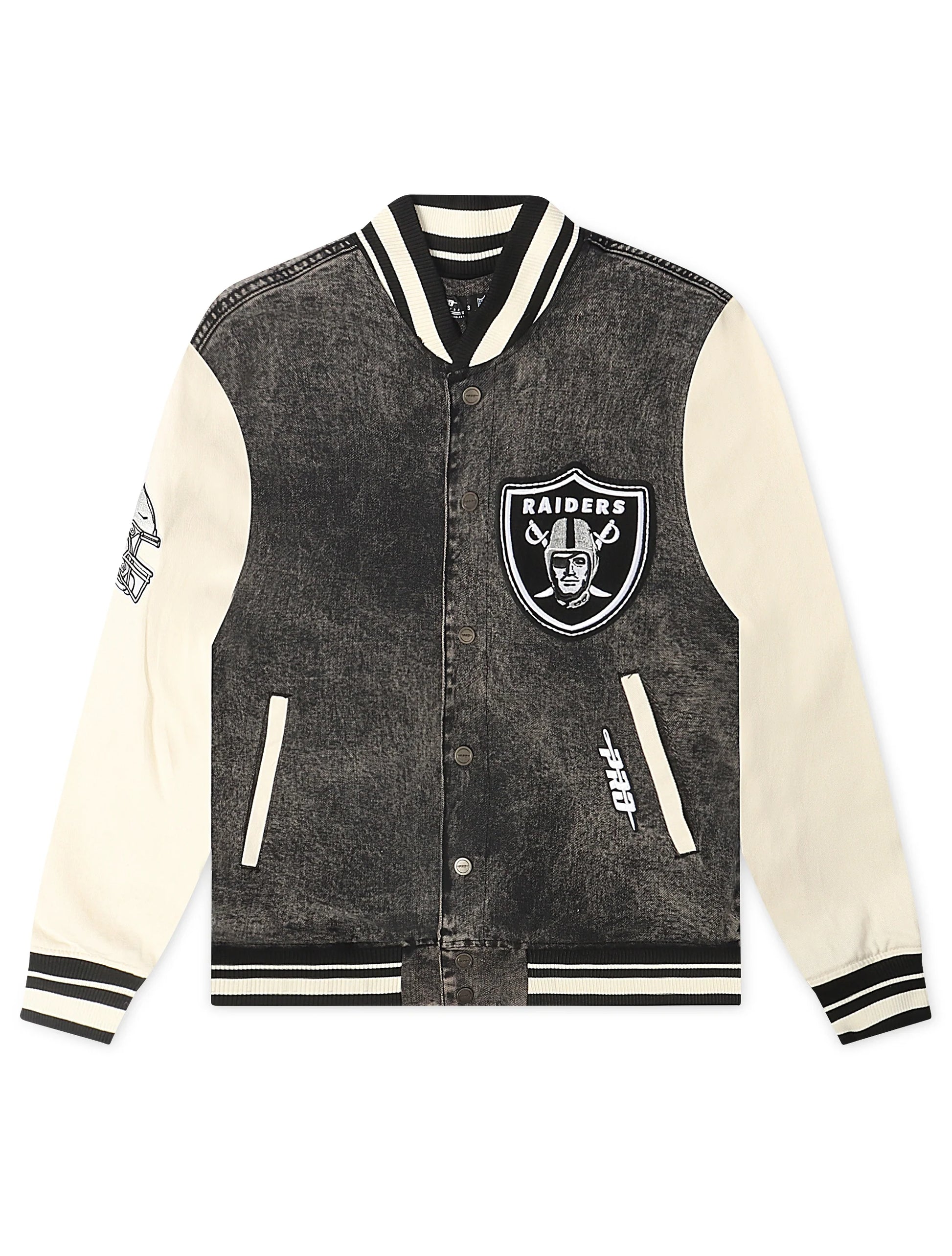 Stand out on game day with the Pro Standard Raiders Rebel Athletics Jacket in Charcoal/Cream. This statement piece combines vintage-inspired washed textures with premium team embroidery for the ultimate Raiders outerwear.