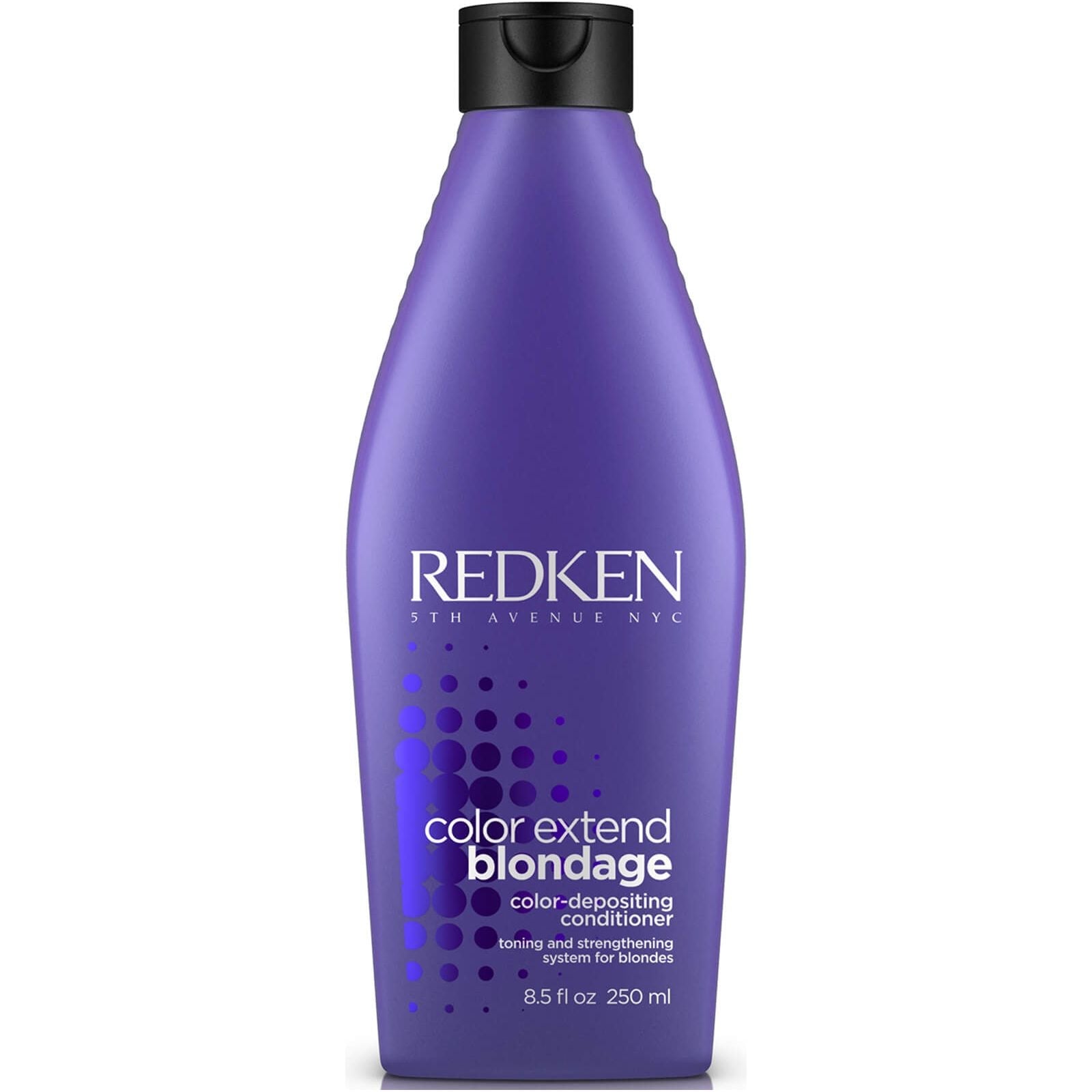 Redken Color Extend Blondage Conditioner is a color-depositing and protecting purple conditioner and hair toner for blonde and highlighted hair. This conditioner features citric acid to strengthen and repair blonde hair from the core and pure violet (purple) pigments to remove unwanted brassiness to leave your blonde hair color cool and bright. This formula gently detangles, strengthens, and moisturizes in one step.