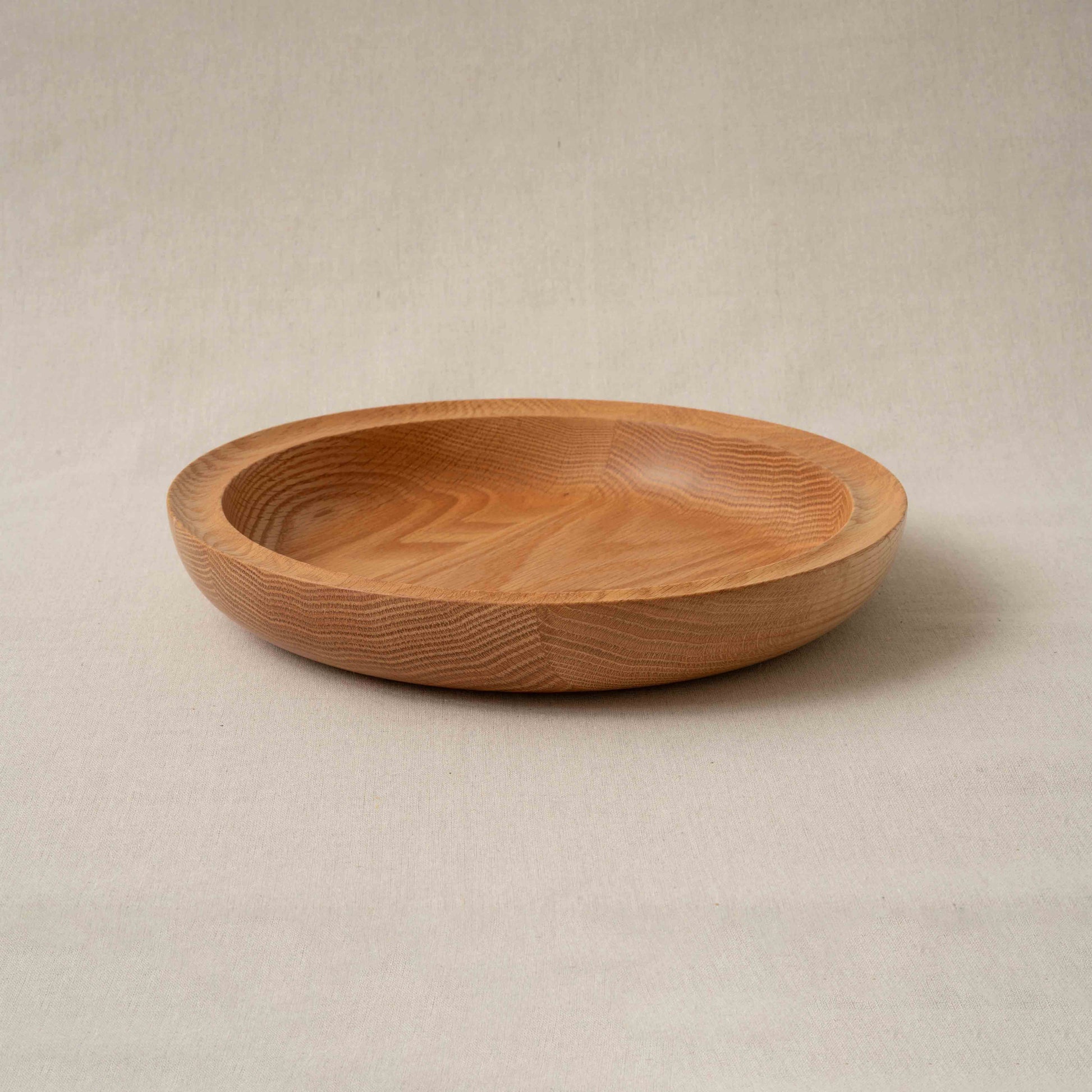 Elevate your family's mealtime with this stunning, handmade oak serving bowl, a truly unique piece crafted with care in California. Imagine the warm, inviting glow of the natural wood as you present your favorite dishes, from a vibrant fruit salad to a comforting pasta bake. This generous bowl isn't just for serving; it's designed to be the centerpiece of your table, adding a touch of natural beauty to every gathering. Crafted from durable Northern Red Oak and finished with a food-safe blend of natural oils and waxes, it's built to withstand the hustle and bustle of family life and become a cherished heirloom. Say goodbye to disposable serving dishes and hello to a piece that will be passed down through generations, carrying with it memories of shared meals and laughter. PRODUCT FEATURES: - Generous 14-inch diameter is perfect for serving family-sized portions of salads, sides, or main dishes. - A depth of 2.3 inches ensures that food stays securely in the bowl, minimizing spills during transport from kitchen to table. - Each bowl is lovingly handmade in Los Angeles, ensuring a one-of-a-kind piece with unique wood grain and character. - Finished with a food-safe oil and wax blend, this bowl is as practical as it is beautiful, ready for everyday use. PRODUCT SPECS: - Material: Northern Red Oak - Finish: Hand-rubbed oil & wax (tung oil, walnut oil, orange oil, carnauba wax, candelilla wax, beeswax) - Dimensions: 14” diameter, 2.3” tall - Country of Production: Made in USA (California)