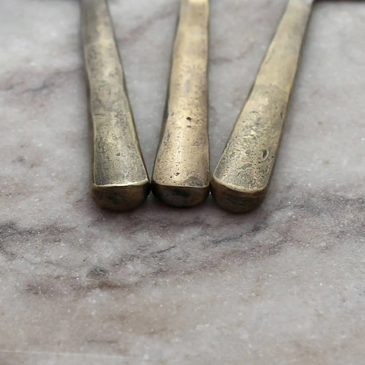 With its textured brass finish, our Sonar Cheese Knives 3 Pc. Set brings rustic charm to your cheese boards. This artisan-crafted set includes all you need for shaving, slicing, cutting, and serving delicious cheese.