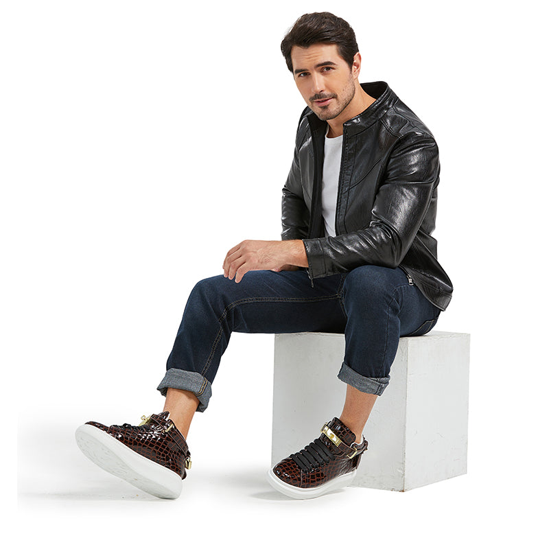 The Ostranuxe Business Croc-Sneakers feature a genuine cow leather upper and a durable rubber outsole, with a lace-up closure for a secure fit. The insole and lining are crafted from genuine pigskin leather, providing comfort and breathability, while the round toe design and metal decoration add a touch of sophistication.