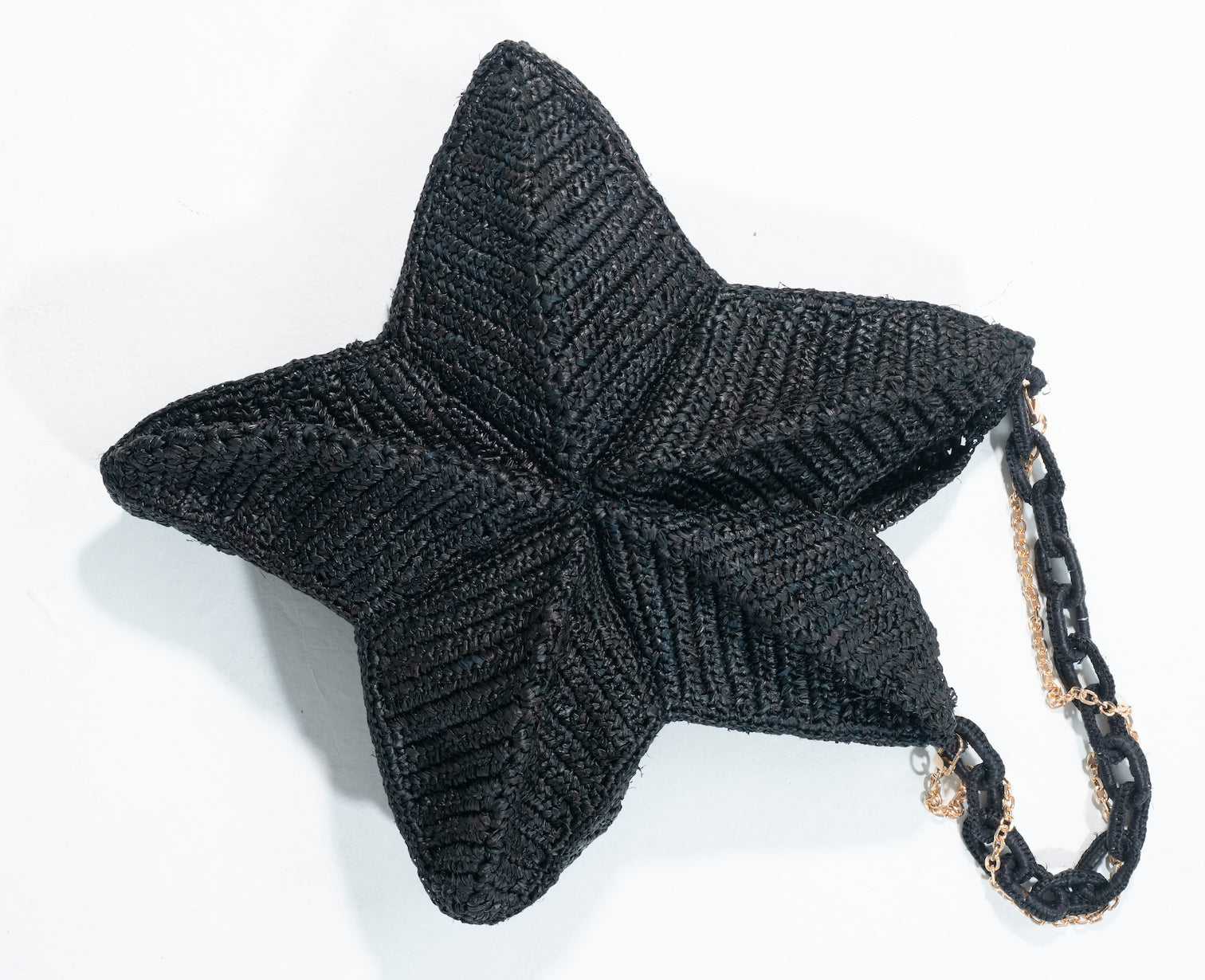 The Star Bag is the ultimate statement piece of the year, embodying elegance and seasonal charm. Its distinctive star shape makes it the focal point of any summer wardrobe, ideal for beach days and beyond. Meticulously crafted with exquisite attention to detail, this bag showcases flawless finishes and superior quality, elevating your style with refined sophistication. A timeless accessory destined to captivate. Material: Raffia Chain: Metal Made in Madagascar