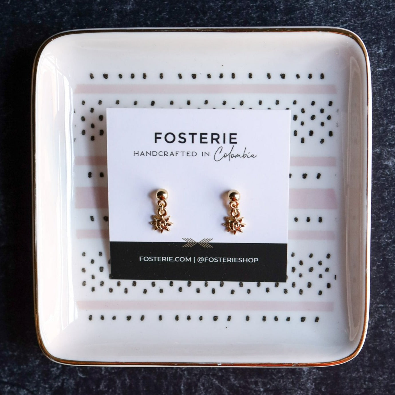 Our SUN STUD EARRINGS are an obvious choice for adding a little sunshine to your day. Super sweet as a single pair, they also make a lovely layered look with multiple piercings.  Hypoallergenic and tarnish resistant.