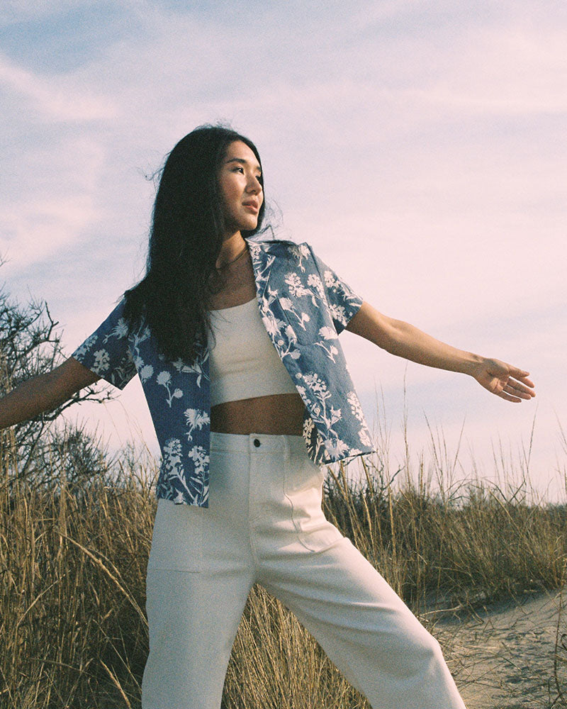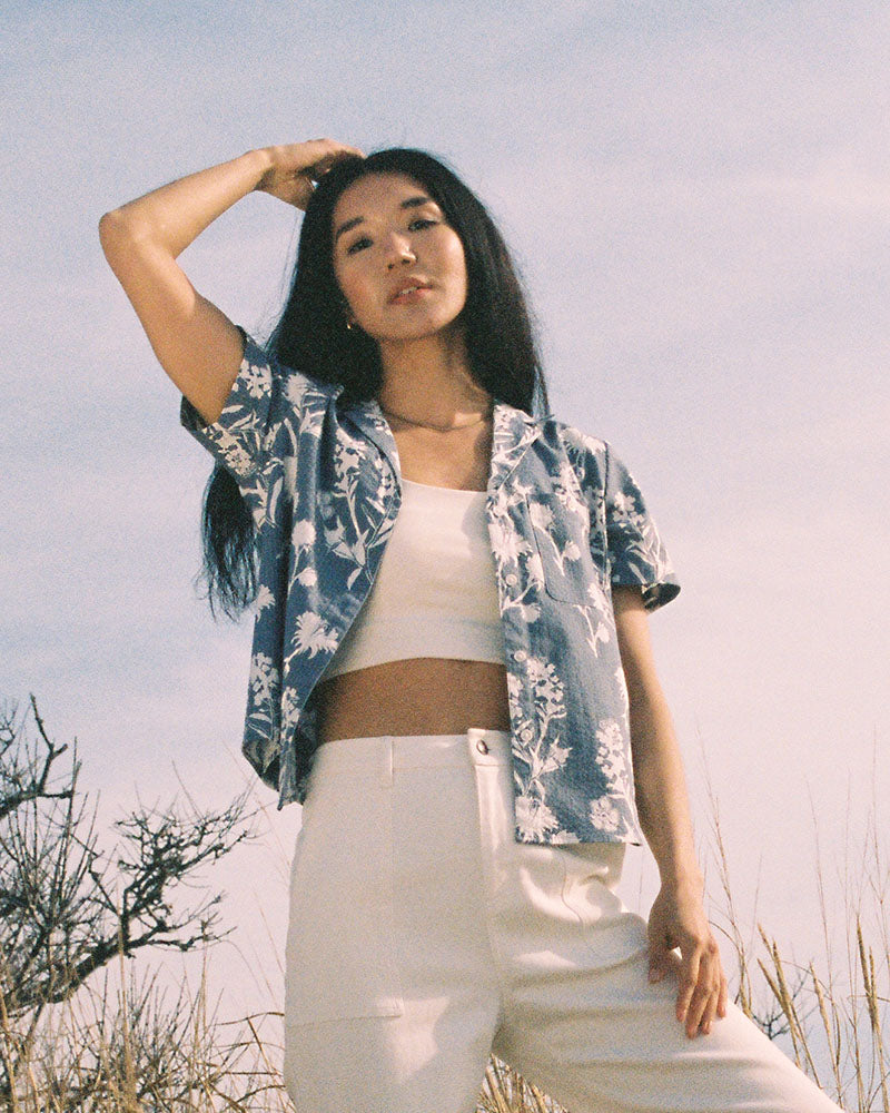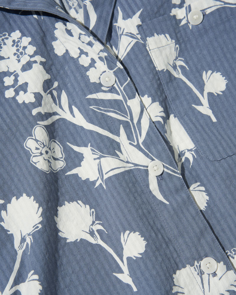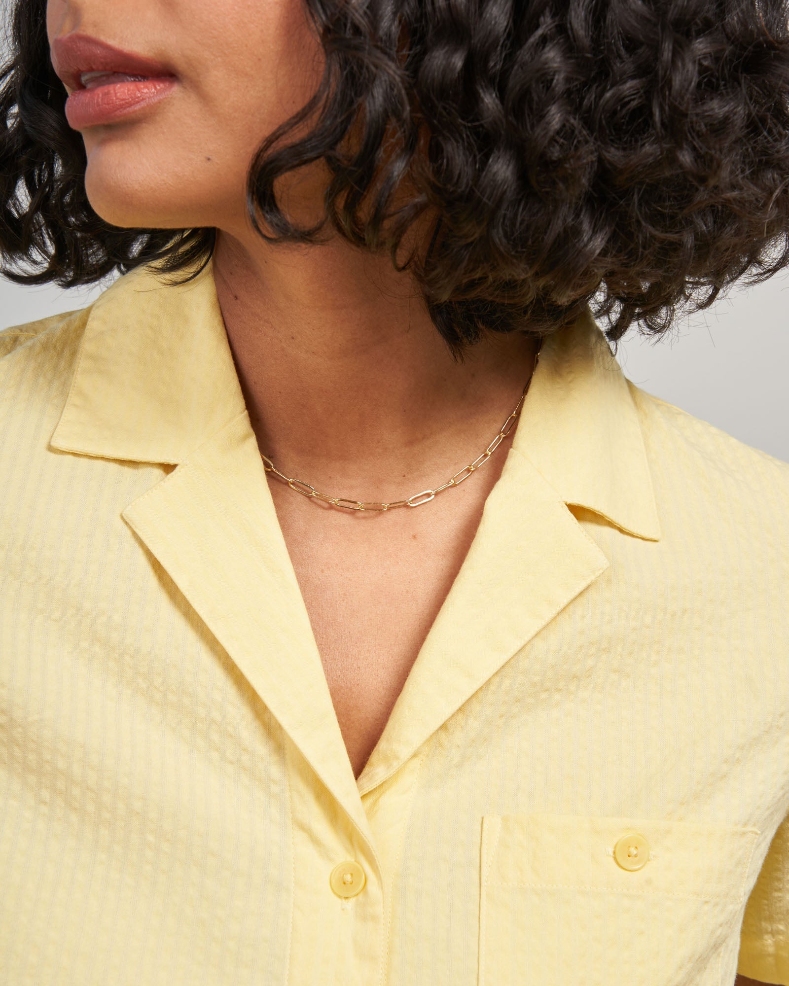 Cool girl summer. Lightweight seersucker fabric gives this easygoing button down a summery, textured look (and is naturally cooling) while a camp collar adds a hint of classic, vintage-inspired style.