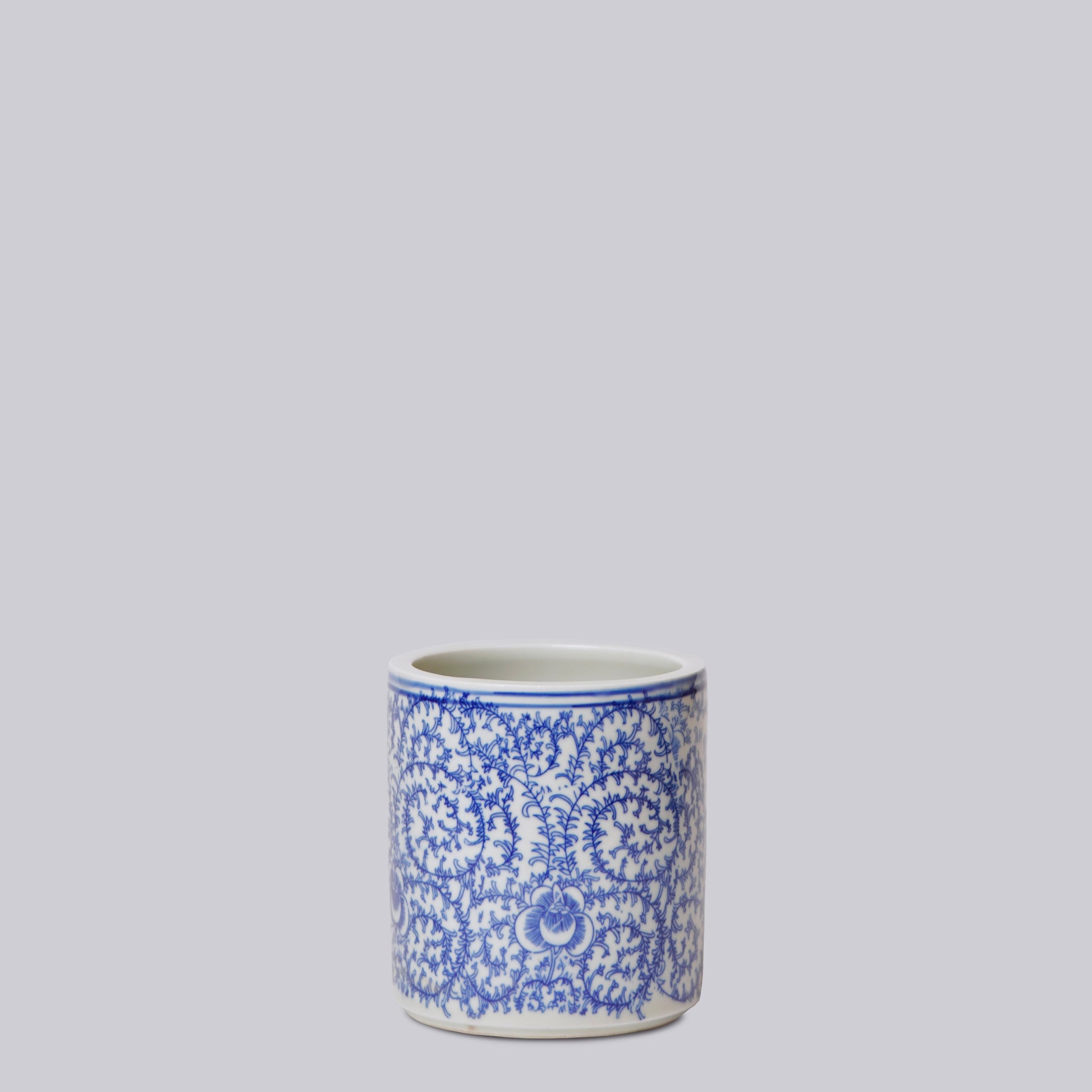 Tiny Blue and White Porcelain Country Peony Cachepot
