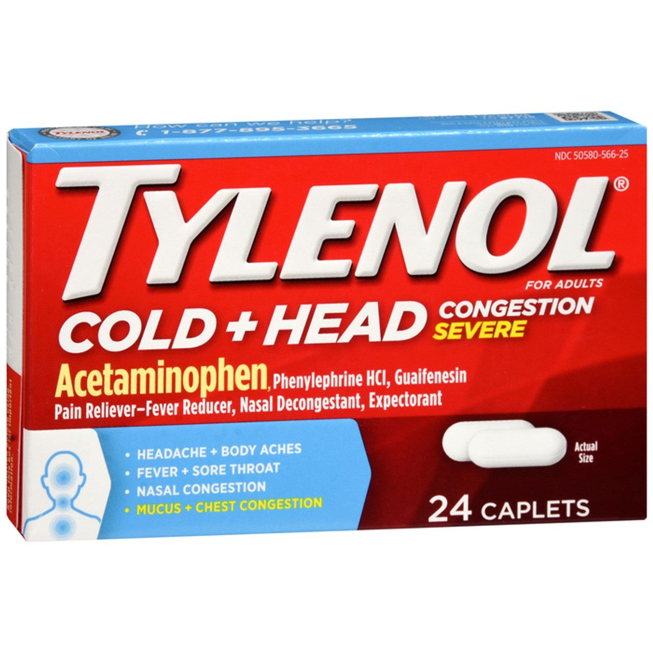 Tylenol Cold + Head Congestion Severe, For Adults, Caplets