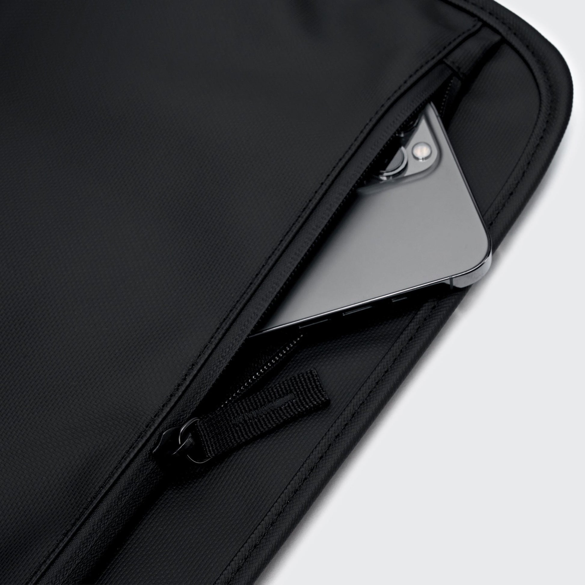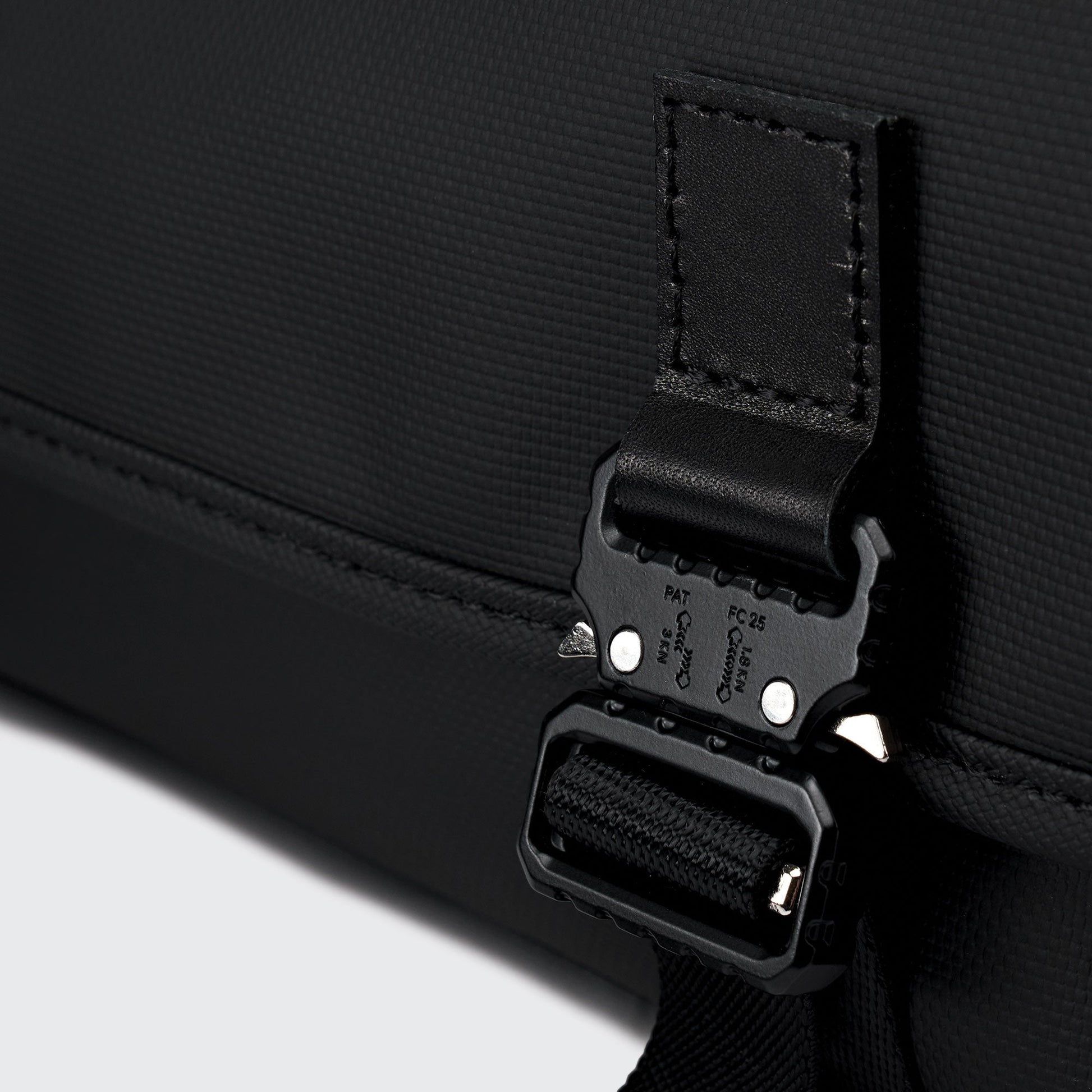 This sleek technical messenger is made with recycled hyperlight+ fabric and high-quality vegan leather details.