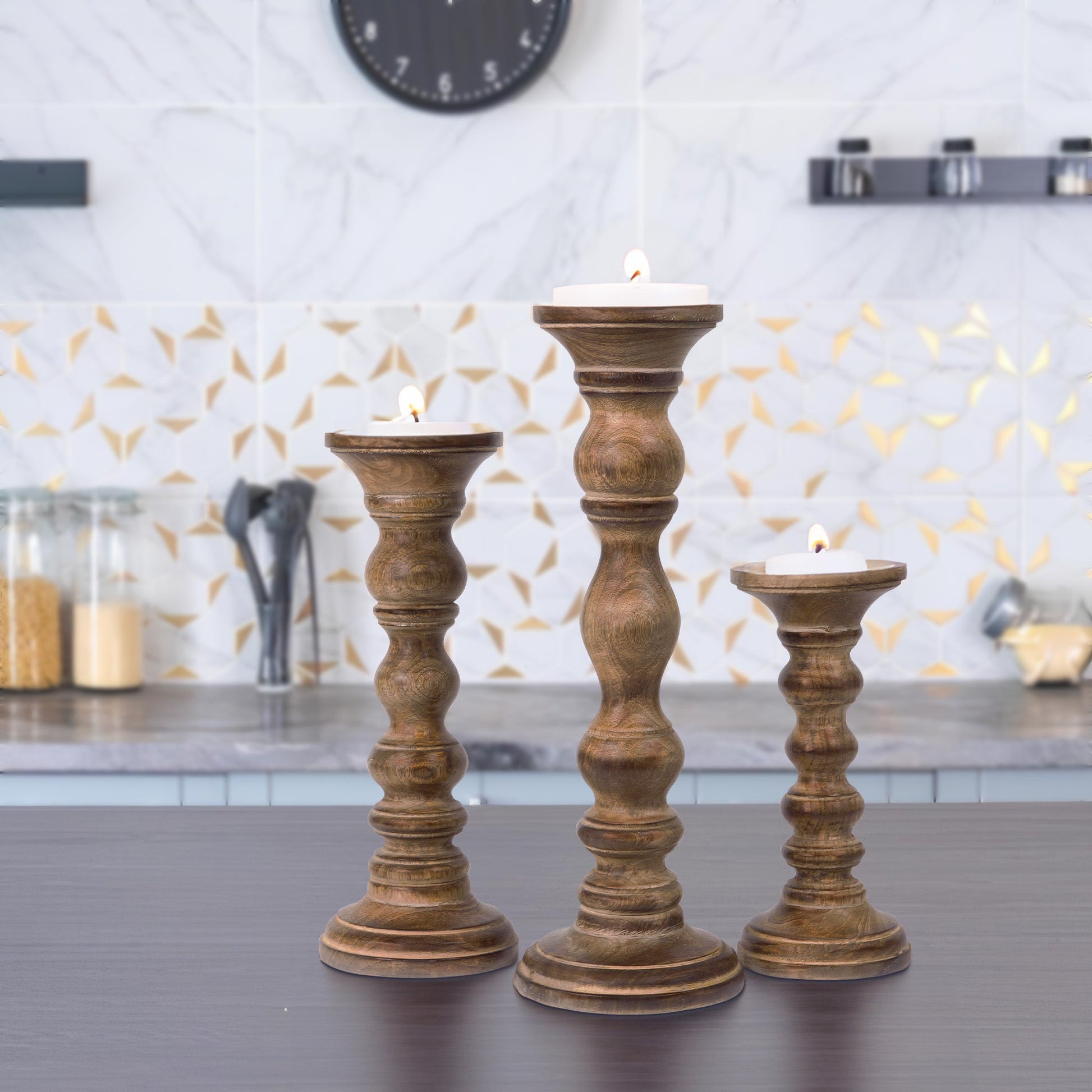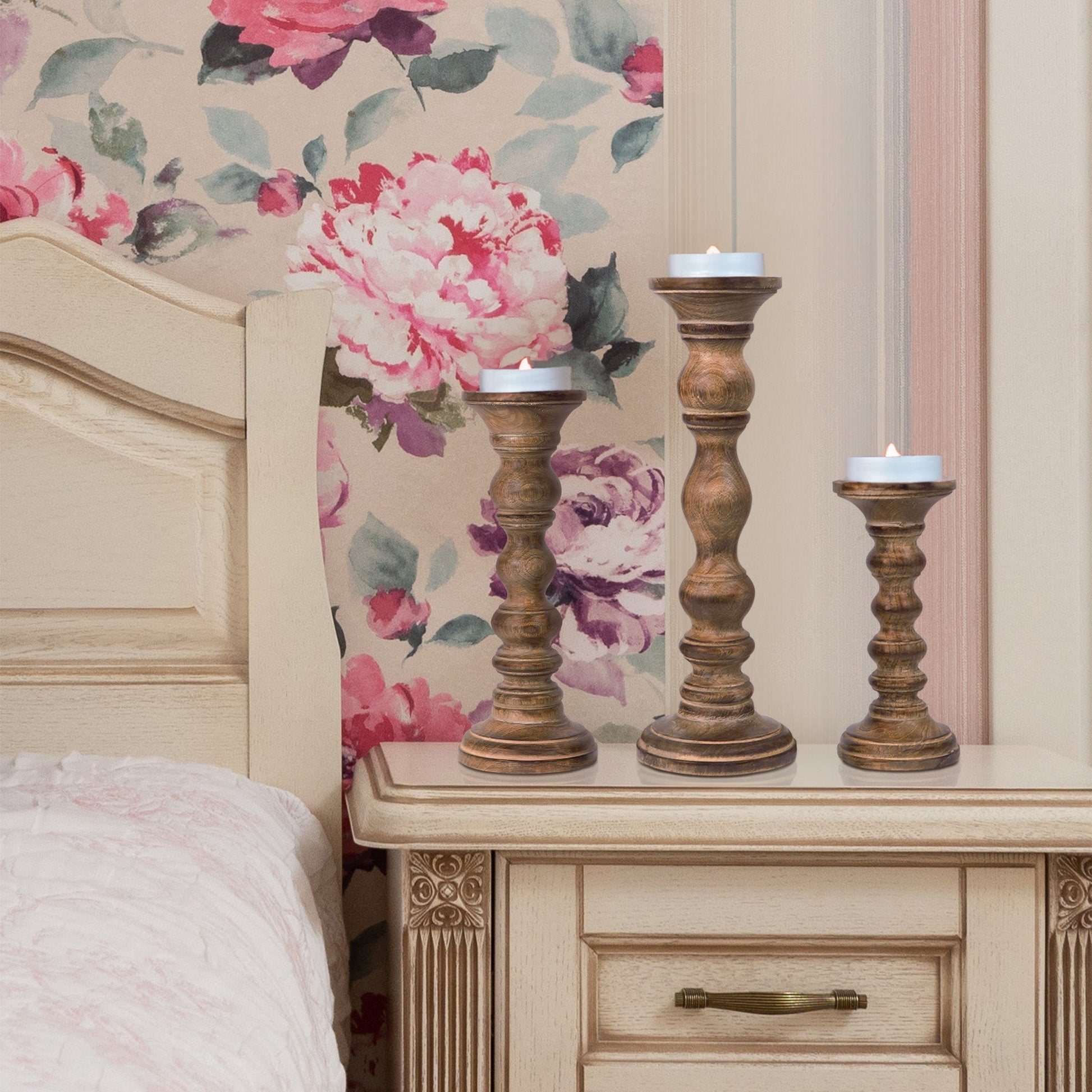 Our Willow Mangowood Candle Holder Set, handcrafted by skilled artisans, showcases natural mango wood's rich texture and timeless artistry. This elegant trio, available in various colours and stains, brings warmth and grace to any space. Small 9" | Medium 12" | Large 15"